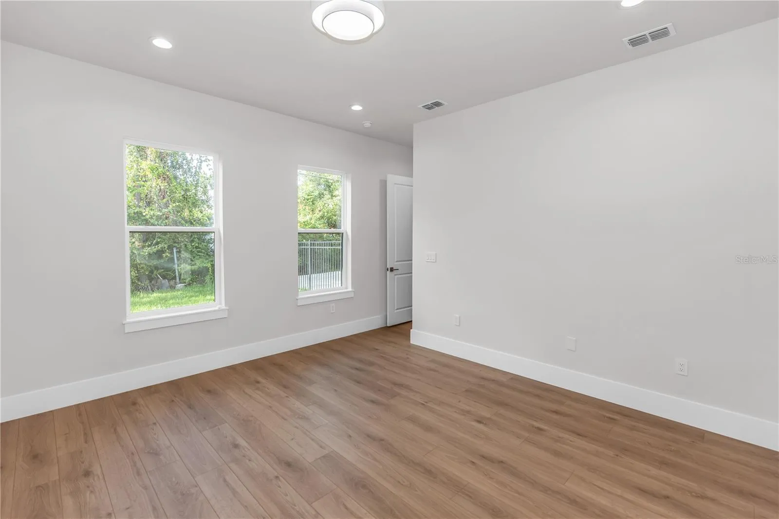 Step through the double-door entry into a world of elegance, featuring high-end LVP flooring, 8-foot interior doors, and 10-foot ceilings throughout. The open-concept floor plan is flooded with natural light, enhanced by recessed lighting and clean, contemporary lines.
