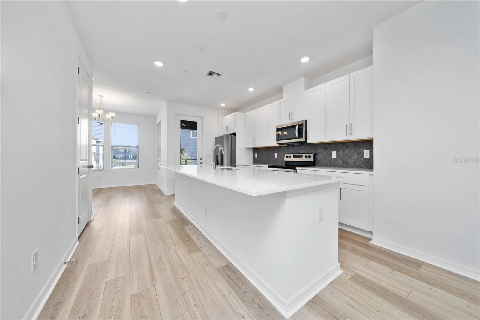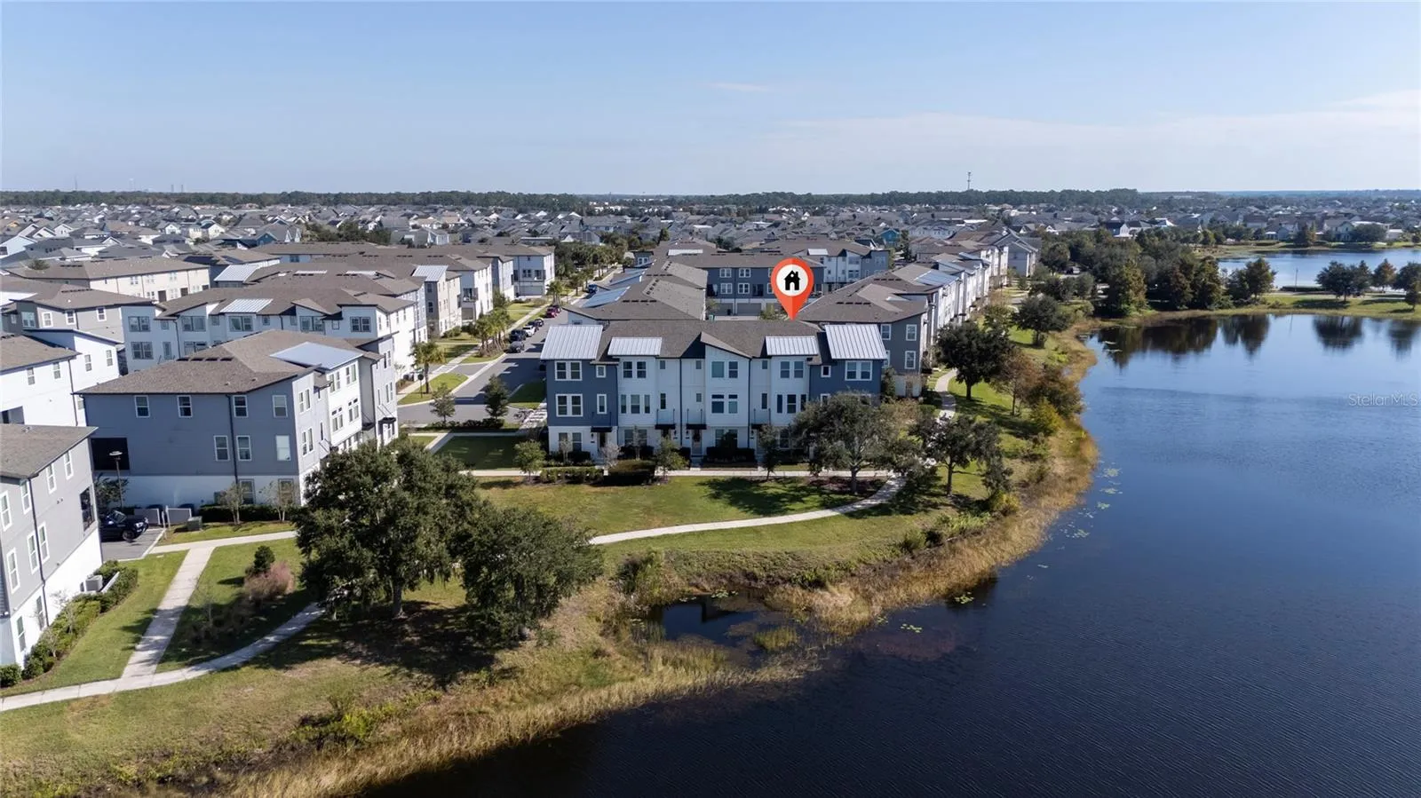 Experience stunning front-facing lake views and breathtaking sunsets from this elegant Luxury Urban Townhome in Laureate Park. This home offers a peaceful, retreat-like feel with waterfront scenery enjoyed by the main living areas. The first level features a private bedroom with full bath ideal for guests or a home office, plus a 2-car garage. The second level highlights a bright open great room connecting the living and dining areas to a modern kitchen with 42″ cabinets, quartz countertops, stainless steel appliances, and luxury vinyl plank flooring. A rear balcony provides a relaxing outdoor space for fresh air and morning coffee. The third floor includes a spacious primary suite with dual vanities and a walk-in shower, along with an additional bedroom featuring its own full bath. Enjoy access to Laureate Park’s resort-style amenities, including pools, fitness center, playgrounds, and 44+ miles of trails. Located minutes from Medical City, VA & Nemours, dining, shopping, USTA, major highways, MCO Airport, theme parks, and Florida’s beaches.