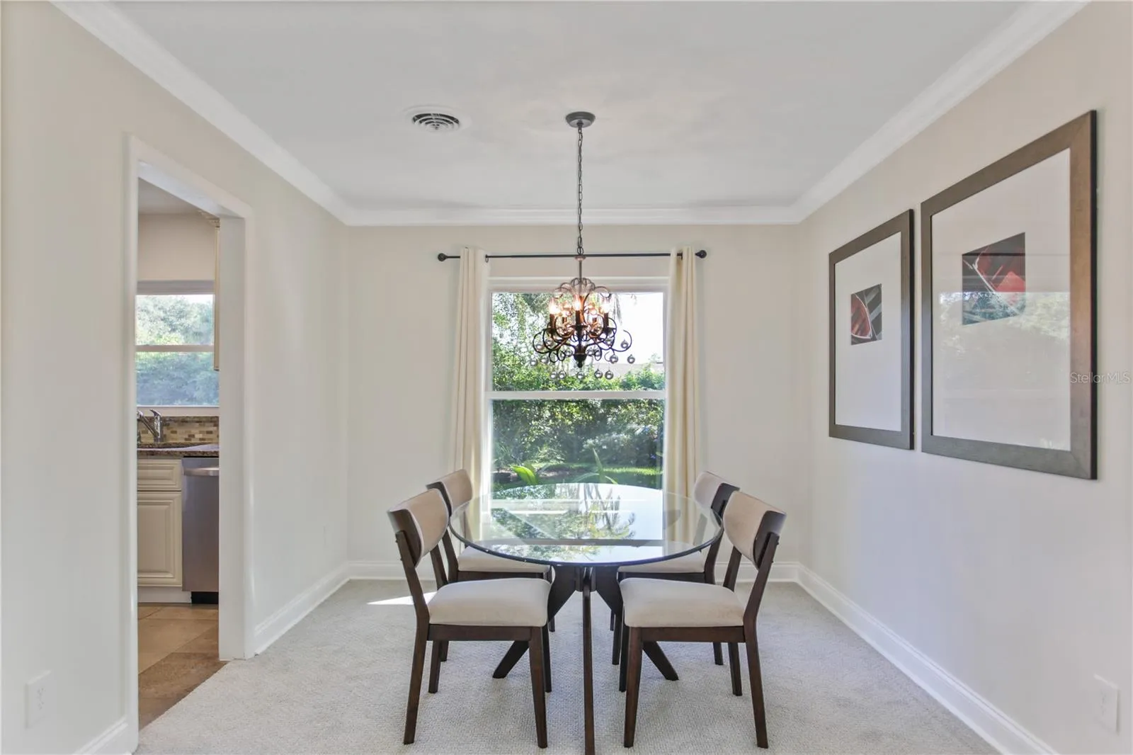 Lovingly maintained and move-in ready, this Mid-Century Modern 4-bedroom, 2-bath home (just under 1,700 sq. ft.) offers light-filled living and timeless style in the heart of Winter Park Pines. Set beneath graceful mature oaks, the landscaped front yard provides a welcoming canopy. Step through the front door into a travertine-floored foyer overlooking the open living and dining areas — ideal for entertaining or relaxing in natural light. The modern kitchen features: Painted wood cabinetry, Granite countertops and stainless steel appliances (range, refrigerator, microwave, dishwasher, and wine fridge), Peninsula bar with prep sink for easy meal prep, French doors opening to the backyard. All four bedrooms feature ceiling fans and brand new textured carpet. The primary suite includes two closets and an updated marble-tiled bath. Enjoy the fully fenced backyard with garden space and irrigation system—perfect for pets, play, or quiet evenings under the trees. There’s also extra storage off the courtyard-entry carport, plus a pantry and coat closet for everyday convenience. Insulated, upgraded windows, Upgraded electrical service, Fresh paint throughout, New carpet and fixtures. The prime location is located just steps from Winter Park Pines Golf Course and minutes from Park Avenue, Winter Park Village, and Baldwin Park Town Center. Convenient to shopping, dining, and top-rated schools.