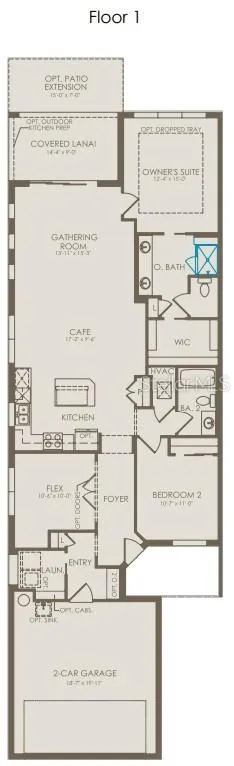 Introducing the exquisite Ellenwood Villa by Del Webb, where luxury meets everyday convenience. This home features 2 bedrooms, an enclosed flex room, and 2 bathrooms in a thoughtfully designed layout that balances style with comfort. The spacious, open-concept kitchen, café, and gathering room are bathed in natural light, creating a warm and inviting space perfect for relaxation or entertaining. High ceilings, ample windows, and a sliding glass door that leads to the covered lanai help blend indoor and outdoor living seamlessly. The kitchen stands as a true highlight, offering both beauty and functionality. It boasts stainless steel Whirlpool appliances – including a refrigerator, elegant 42” soft-close cabinets, Lagoon Quartz countertops, an upgraded faucet, and a sleek stainless-steel single-bowl sink. Whether you’re preparing a meal or hosting guests, this kitchen is designed for ease and elegance. Retreat to the owner’s suite, tucked at the back of the home for privacy. This serene space features a spa-like en suite bathroom with a frameless glass-enclosed shower, a private toilet area, a dual vanity with quartz countertops, and a linen closet—creating a peaceful environment for unwinding. The secluded secondary bedroom and bathroom offer even more privacy, providing a perfect retreat when you need it most. The enclosed front flex room adds versatility to the home, ideal for a home office, hobby space, or any personal retreat. Designer finishes are throughout, with thoughtful touches such as pendant pre-wiring, 2” faux wood blinds, 8’ interior doors, and Shaw brand luxury vinyl plank flooring. Tile flooring graces the bathrooms and laundry room, enhancing the overall aesthetic. For the modern homeowner, this home is equipped with smart technology, including a smart thermostat, smart doorbell, and LED downlights ensuring your home is as connected as it is stylish. With its blend of luxury, functionality, and cutting-edge features, the Ellenwood Villa offers an exceptional living experience. Don’t miss the opportunity to make it yours.