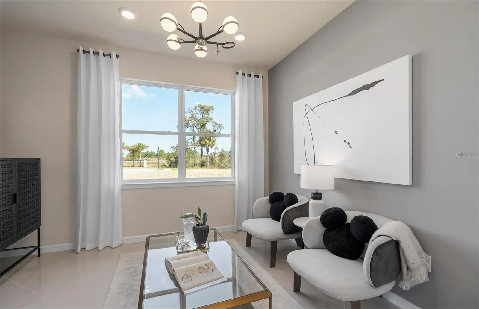 Introducing the exquisite Ellenwood Villa by Del Webb, where luxury meets everyday convenience. This home features 2 bedrooms, an enclosed flex room, and 2 bathrooms in a thoughtfully designed layout that balances style with comfort. The spacious, open-concept kitchen, café, and gathering room are bathed in natural light, creating a warm and inviting space perfect for relaxation or entertaining. High ceilings, ample windows, and a sliding glass door that leads to the covered lanai help blend indoor and outdoor living seamlessly. The kitchen stands as a true highlight, offering both beauty and functionality. It boasts stainless steel Whirlpool appliances – including a refrigerator, elegant 42” Dana White soft-close cabinets, Lagoon Quartz countertops, a stylish tile backsplash, an upgraded faucet, and a sleek stainless-steel single-bowl sink. Whether you’re preparing a meal or hosting guests, this kitchen is designed for ease and elegance. Retreat to the owner’s suite, tucked at the back of the home for privacy. This serene space features a spa-like en suite bathroom with a frameless glass-enclosed shower, a private toilet area, a dual vanity with quartz countertops, and a linen closet—creating a peaceful environment for unwinding. The secluded secondary bedroom and bathroom offer even more privacy, providing a perfect retreat when you need it most. The enclosed front flex room adds versatility to the home, ideal for a home office, hobby space, or any personal retreat. Designer finishes are throughout, with thoughtful touches such as pendant pre-wiring, 2” faux wood blinds, 8’ interior doors, Whirlpool washer and dryer, comfort-height toilets, and Shaw brand luxury vinyl plank flooring. Tile flooring graces the bathrooms and laundry room, enhancing the overall aesthetic. For the modern homeowner, this home is equipped with smart technology, including a smart thermostat, smart doorbell, and LED downlights ensuring your home is as connected as it is stylish. With its blend of luxury, functionality, and cutting-edge features, the Ellenwood Villa offers an exceptional living experience. Don’t miss the opportunity to make it yours.
