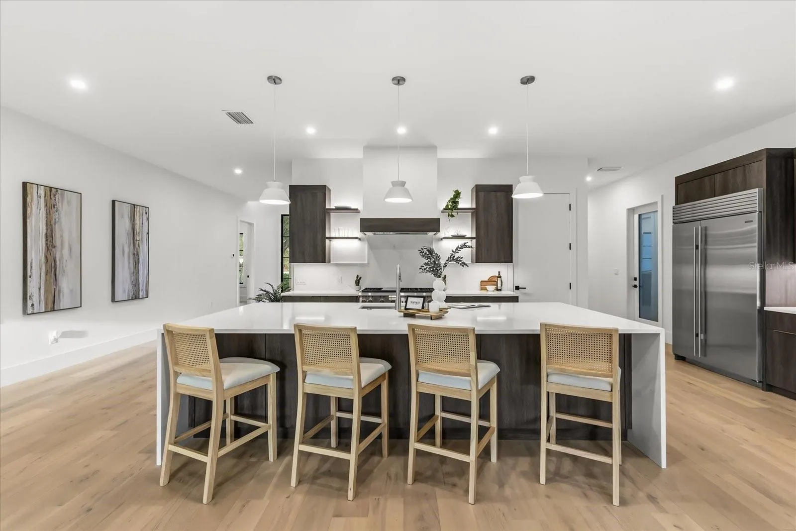 Step into a world of modern elegance in this newly completed estate in the heart of Winter Park. Masterfully constructed, this five-bedroom residence with six full and one half baths spans over 4,500 square feet of luxurious design and comfort. From the moment you enter the soaring foyer, light pours through expansive windows that frame every angle of the open floor plan, creating a seamless connection between indoor and outdoor living.