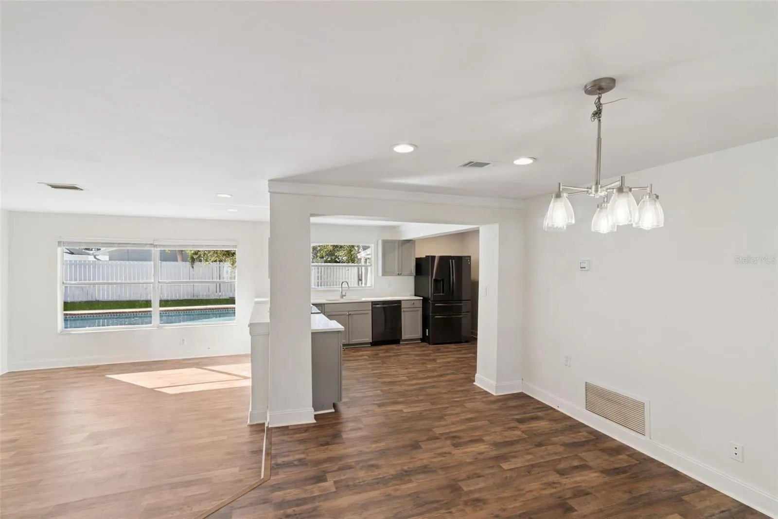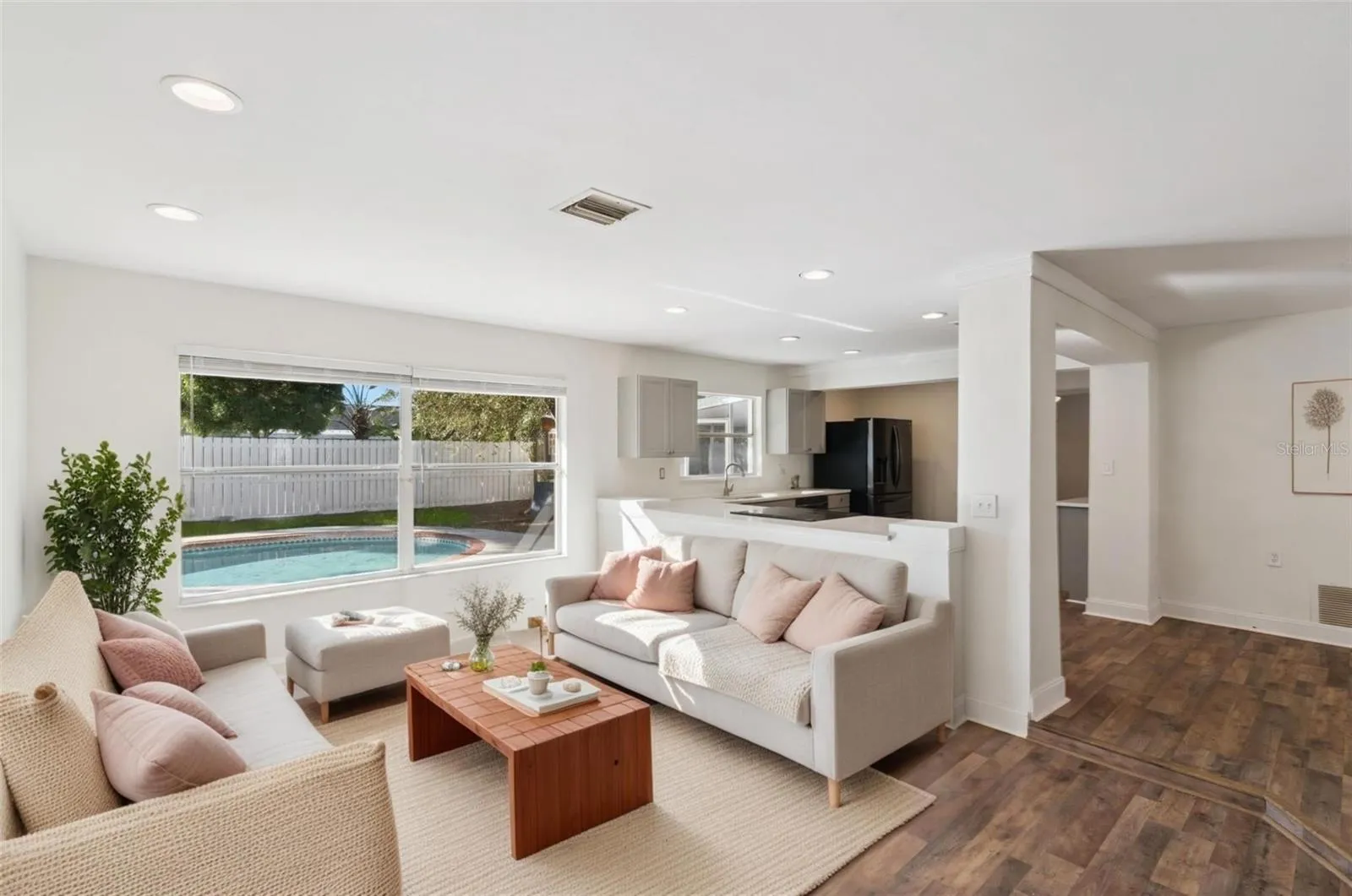Outside, step through sliding glass doors to your screened-in patio and sparkling pool, surrounded by lush landscaping and a fully fenced backyard — ideal for relaxing or hosting gatherings year-round.