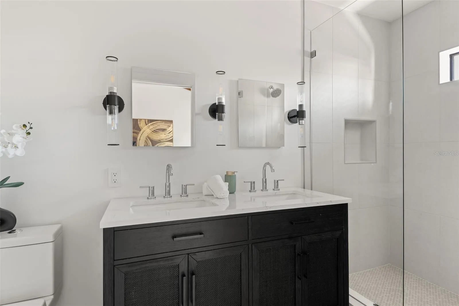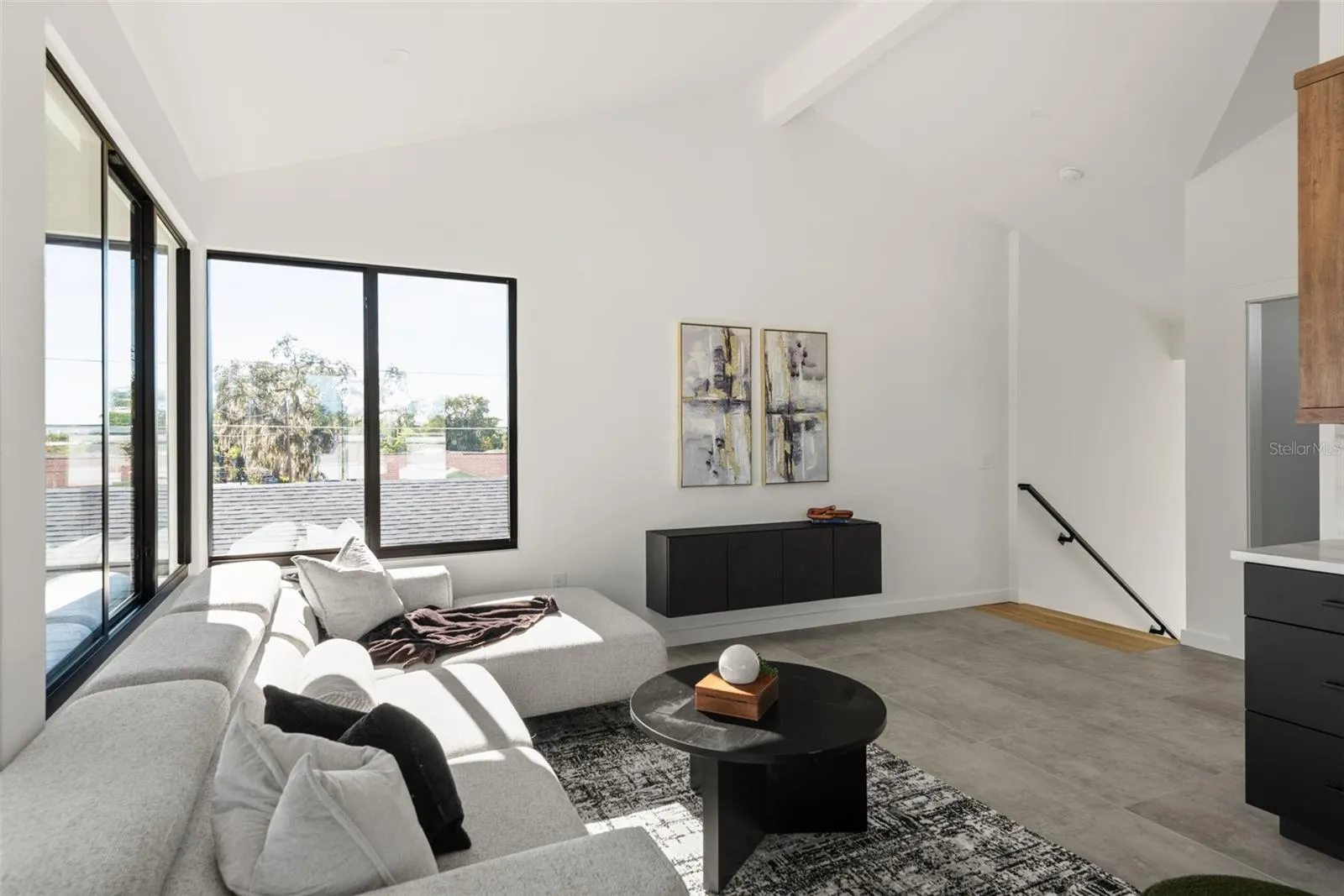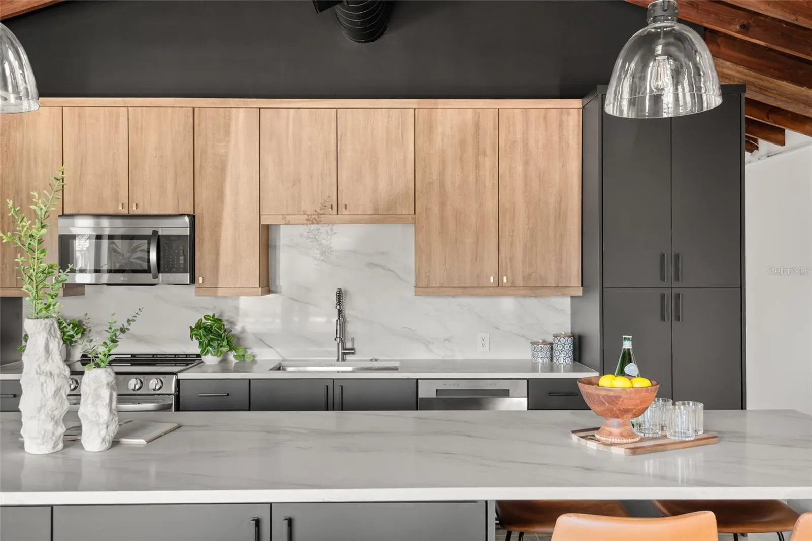 Welcome to 870 Carver Street, a versatile three-bedroom, three-bath residence offering privacy, thoughtful design, and two distinct living experiences in the heart of Winter Park. With 1,875 square feet under air, the property includes a 1,209-square-foot, two-bedroom, two-bath main home and a 666-square-foot, one-bedroom, one-bath garage apartment, ideal for multigenerational living, rental income or private home office use. Designed by award-winning architect David Crabtree of Hive Workshop and constructed by Barefoot Brothers Construction, the home showcases vaulted ceilings with exposed rafters, warm wood finishes and industrial-inspired black metal ductwork. The primary suite includes a floating wall closet system, in-suite laundry and a spa-style bath with dual-sink floating vanity and glass-enclosed walk-in shower. The second bedroom features custom built-ins and a full bath with a tub-shower combination. A chef’s kitchen anchors the open living area with solid wood cabinetry, under-cabinet lighting and a substantial island with seating for four. Black aluminum-framed windows flood the interiors with natural light, enhancing the home’s open-plan design. The garage apartment is accessed via a private entrance and dedicated driveway that fronts Carver Street. The home’s distinct dual-street orientation enhances separation of space, particularly for rental or guest use. Inside, the apartment mirrors the main home’s design language with vaulted ceilings, tile flooring, a full kitchen, en-suite bath, private laundry, and white oak stairs leading to a cohesive living and dining area. The garage offers oversized dimensions and extra depth for storage, and is accessed via a sliding steel-framed wood-clad gate along Railroad Avenue. A second driveway and swing gate on Carver Street are thoughtfully positioned to serve the apartment independently, offering private access for separate use. The fully fenced yard includes a rear garden courtyard, covered entries and an expansive front porch with warm wood architectural detailing. Ideally within short distance to Park Avenue, Winter Park Village, Whole Foods Market, the Winter Park Golf Course, and SunRail and Amtrak stations, this is a rare opportunity to own a design-forward residence with dual-street presence in a transforming urban enclave.