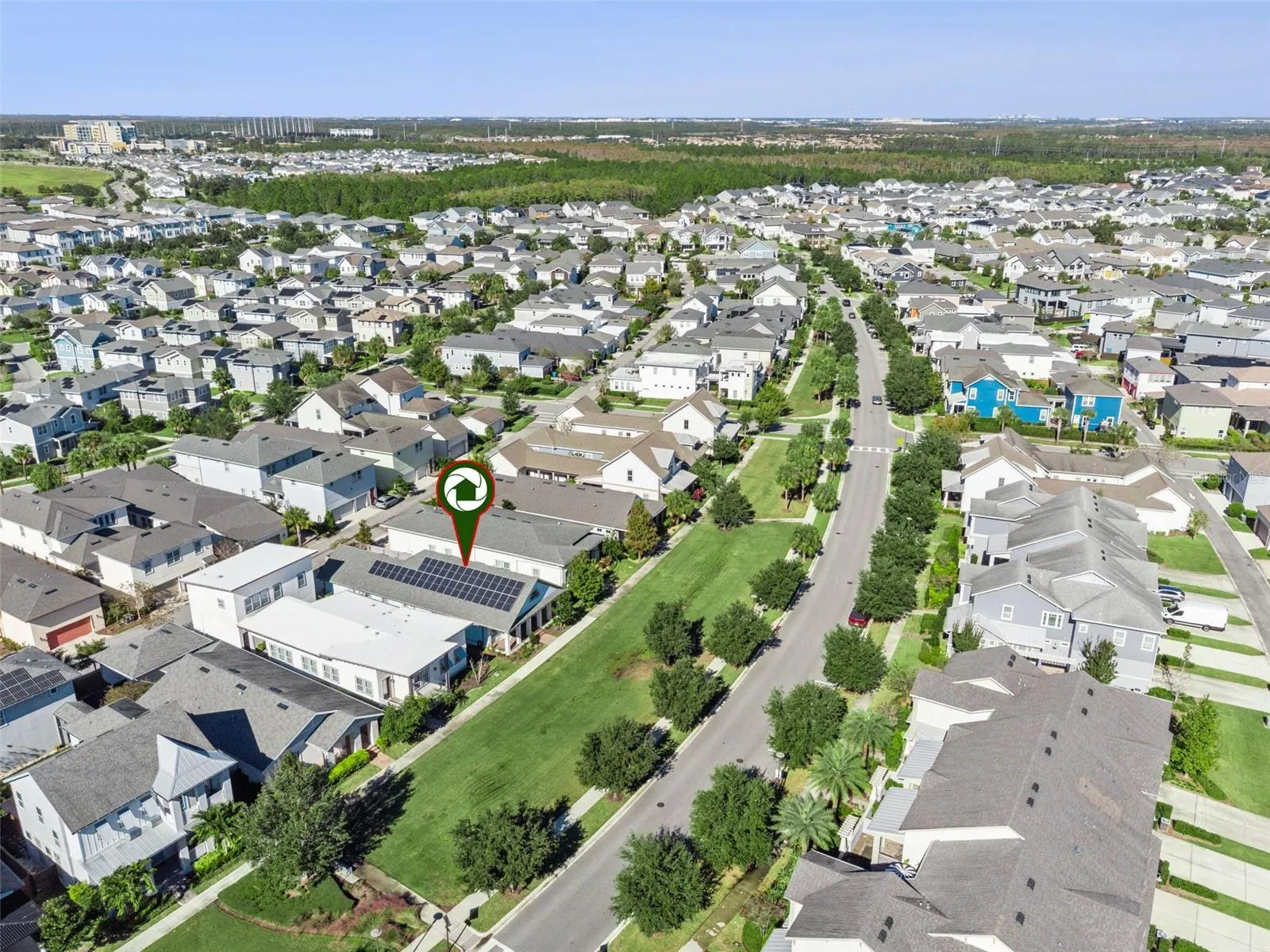 Lake Nona isn’t just a place, it’s a lifestyle! Step into life in the vibrant community of Laureate Park where the best of Lake Nona and Orlando surround you and every day feels like a vacation (minus the sand in the car). Imagine living in a place where neighbors wave like old friends and weekend plans include everything from community yoga to live music at Boxi Park, Florida’s coolest shipping container hangout! Enjoy the beautiful Florida sunshine with a stroll along the scenic nature trails or indulge in a little friendly pickleball rivalry. Imagine enjoying dinner at Canvas Restaurant or the bi-monthly food trucks instead of sitting in traffic. This is one of those rare places where convenience meets charm and somehow makes it look effortless. Inside your new home, upgrades shine in all the right places. From the moment you walk up to the rocking-chair-friendly front porch you’ll feel the warmth that makes this place truly special. The home opens to upgraded luxury vinyl flooring that flows seamlessly throughout the house, adding both style and durability. The heart of the home is the spacious kitchen, anchored by a generous oversized island that’s ready for everything from pancake mornings and homework sessions to holiday spreads and impromptu gatherings. With plenty of prep space and seating, it’s the kind of island everyone ends up around. Just beyond the kitchen, you’ll find your own private getaway: a fully fenced backyard oasis. This thoughtfully designed outdoor space is ideal for grilling, relaxing, gardening, or letting pets roam safely. With professional landscaping and NEW irrigation, you’ll love hosting friends or enjoying a quiet evening under the stars. The split floor plan allows for added privacy and the seller has NEW added designer light fixtures and ceiling fans, NEW interior paint. Not only does this home boast social energy, it also has solar energy! SOLAR PANELS ARE COMPLETELY PAID OFF and the seller notes that all of her utility bills average $100 per month! Electric car? No problem! Electric car charger is already installed in the garage. And the garage is an extension of the home with it’s own AC unit and epoxy floors. A rare feature is the full driveway, not a “shortie” driveway! With its bright spaces, thoughtful upgrades, and inviting indoor–outdoor flow, this meticulously cared for home offers the best of low-maintenance living with high-style appeal. Enjoy the Florida lifestyle and relaxed living from day one!