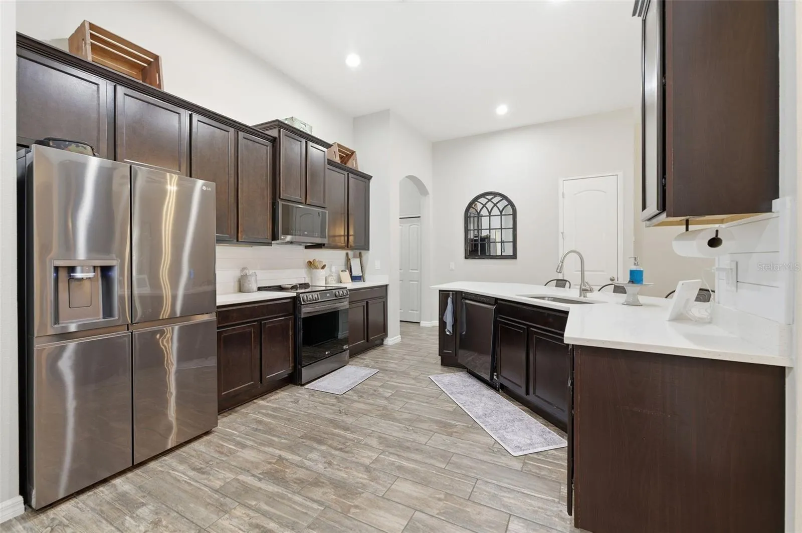 This picture perfect home has just what you need to make it the home of your dreams! Gorgeous quartz counters in the kitchen, marble counters in the bathrooms, ceramic plank wood look tile and hearty laminate wood floors are not only gorgeous but low maintenance! The floorplan is wide open so you won’t miss a minute of this beautiful life! Enjoy morning coffee or afternoon tea out on your impressive brick pavered screened lanai, bask in the shade of the pergola and invite friends and family over to roast some marshmallows over your custom built fire pit! The vinyl privacy fence is great for kids and furbabies!