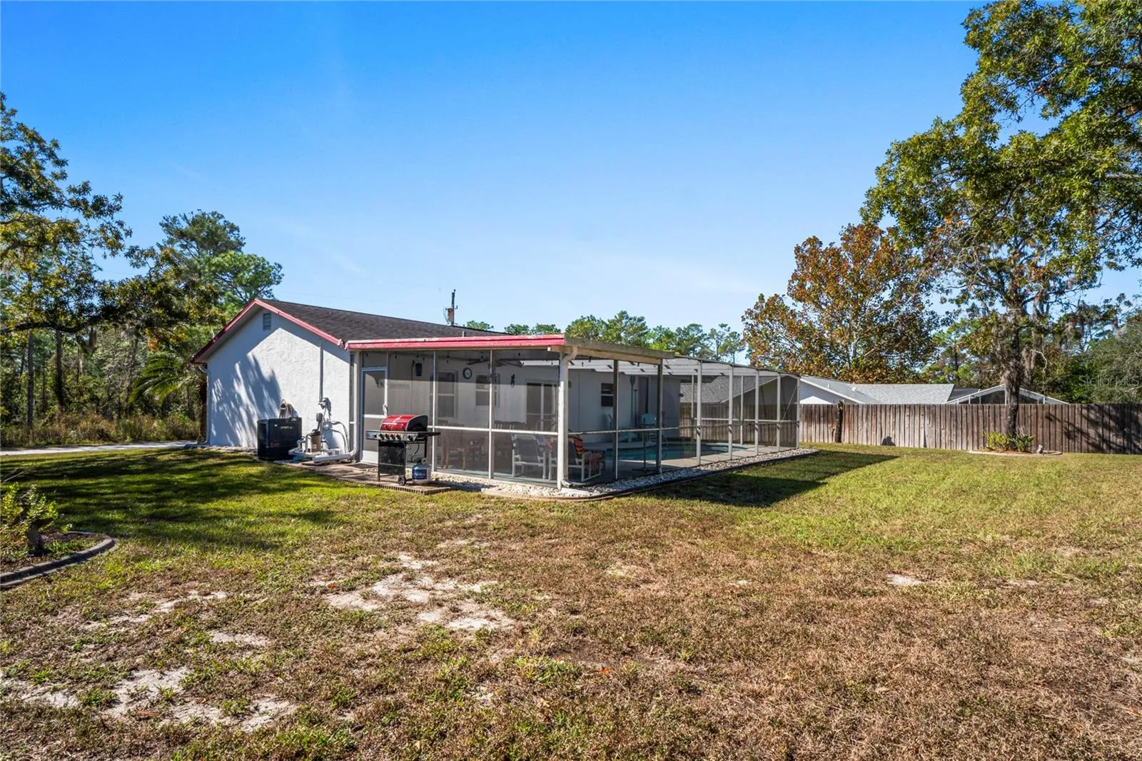 Enjoy the screened lanai overlooking your private pool, perfect for relaxing mornings, sunny afternoons, or hosting gatherings. The fenced yard provides added privacy and is ideal for pets, gardening, or outdoor activities.