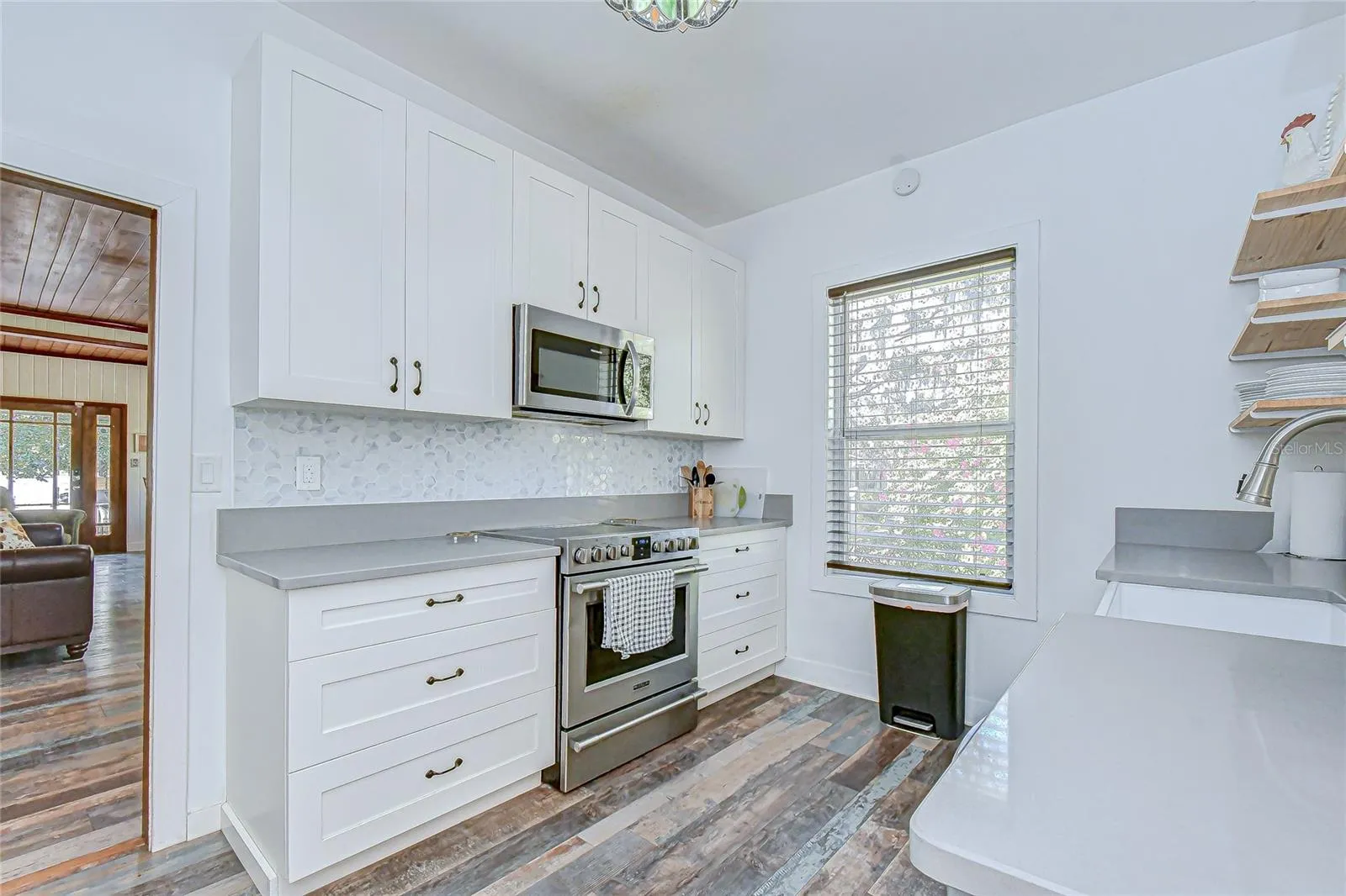 Are you looking for the perfect place to homestead or a TURN-KEY investment property? Welcome to this stunning and truly unique opportunity in the HEART of Tampa, offering nearly 1 ACRE of peaceful land with multiple income-producing possibilities and the freedom of NO HOA. This well-maintained 3 bedroom, 2 bath home is set privately back from the street, giving you the quiet and space you’ve been searching for. The exterior has been freshly painted, and inside you’ll find 9-foot ceilings, full attic insulation, and a modernly updated kitchen featuring attractive open shelving. A LARGE front porch overlooks the yard, perfect for morning coffee, relaxing evenings, or simply taking in the peaceful surroundings. Proven as a VERY successful Airbnb, the sellers can provide income documentation for both the home and the additional on-site camper (camper does NOT convey). The property also includes a spacious air-conditioned Florida room surrounded by windows, offering serene views of the grounds.
