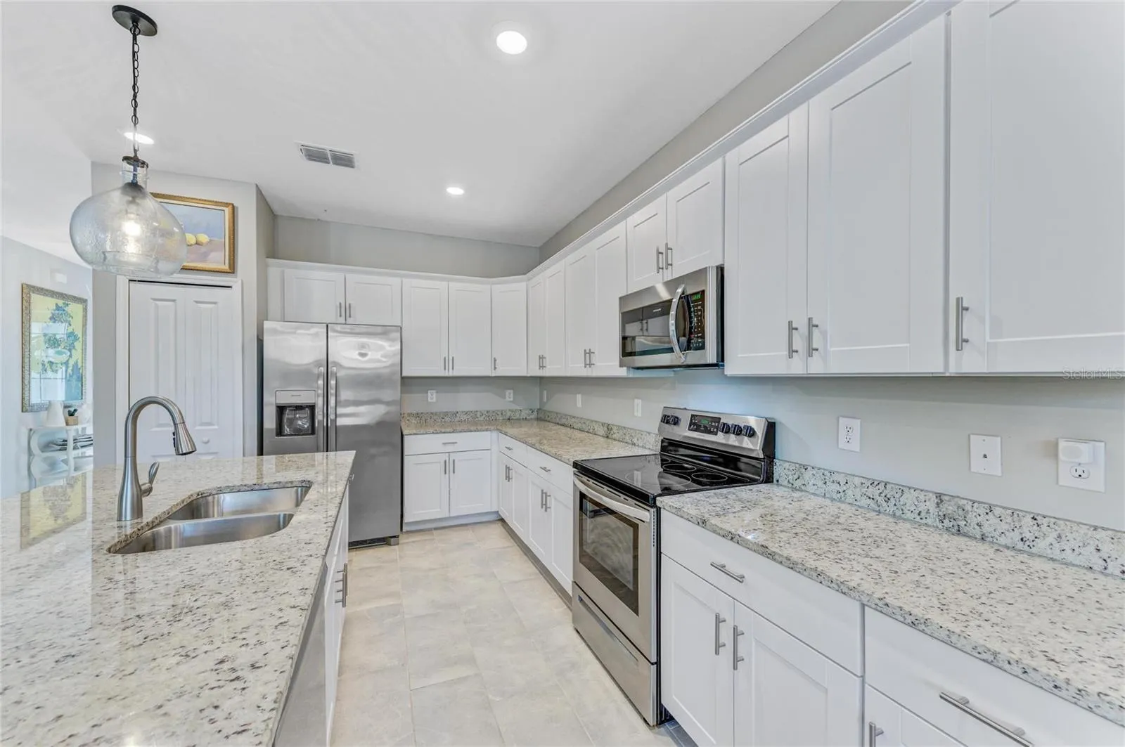 Upstairs, you’ll find three generously sized bedrooms with walk-in closets, two additional bathrooms, and a versatile loft/flex space—perfect for a game room, home gym, office, reading nook, or media room. The primary suite is thoughtfully positioned on the second floor for added privacy and features a large walk-in closet, additional linen storage, dual vanities, and a walk-in shower. From the primary bedroom, enjoy serene views of the sparkling pool and oversized covered lanai—an ideal space for hosting family and friends.