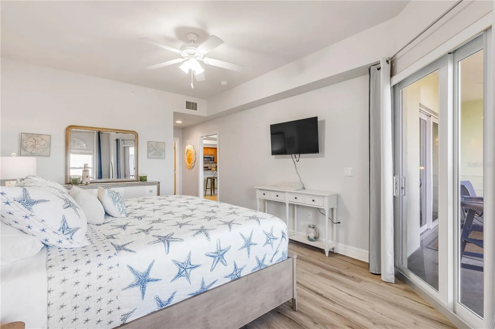 A remote-controlled retractable screen keeps insects away and allows you to enjoy ocean breezes while watching the waves, surfers, wildlife, and even rocket launches. Neutral porcelain tile and year (2022) luxury vinyl plank flooring enhance the calm coastal aesthetic.