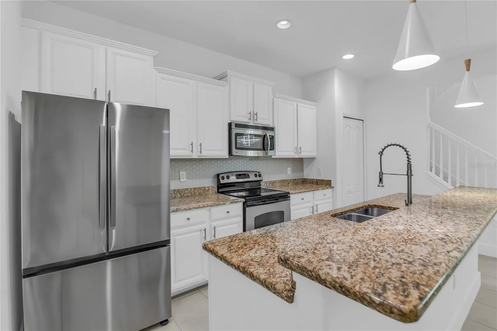 Welcome to Signature Lakes – Independence, one of Winter Garden’s most desirable communities. This beautifully maintained 4-bedroom, 2.5-bath townhome offers a bright open layout with modern finishes, including white cabinetry, granite countertops, stainless steel appliances, designer pendant lighting, and a spacious breakfast bar overlooking the large living area. A delightful feature of this home is the private, fully screened paver courtyard, perfect for relaxing or entertaining, with direct access to the two-car garage. The Primary Bedroom is conveniently located on the lower level. Upstairs you’ll find 3 additional bedrooms and a loft area that could be used for an office space or secondary living room. Residents of Independence enjoy resort-style amenities including two clubhouses, community pool, fitness center, tennis and basketball courts, playground, dog park, business center, walking and biking trails, and a community boat ramp with access to Lake Hancock and Lake Speer. Internet, cable, and lawn care are included with the HOA. Ideally located near Hamlin, Horizon West, top-rated schools, major highways, shopping, dining, and Disney attractions, this home offers the perfect blend of comfort, lifestyle, and convenience.