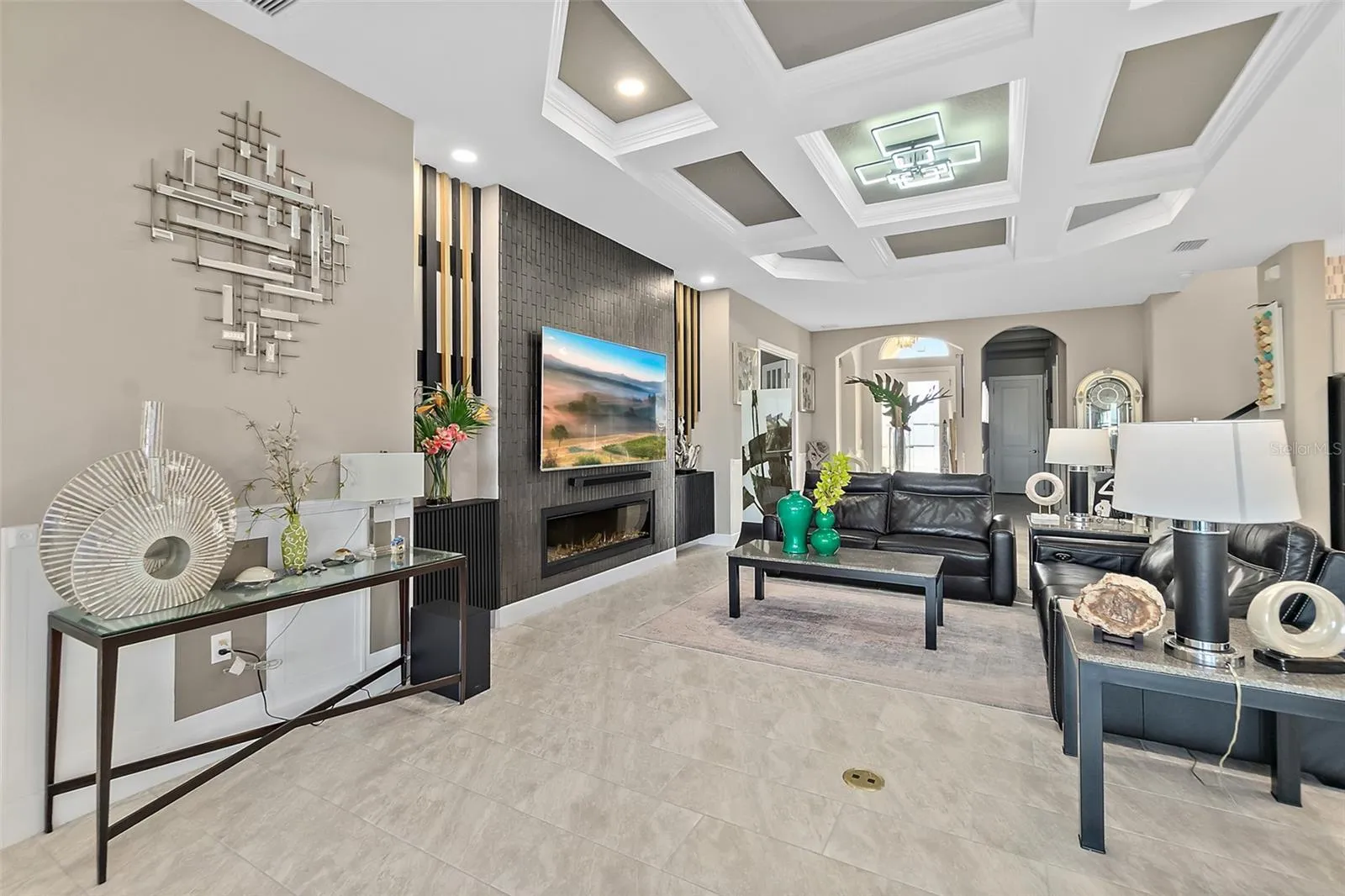 Experience luxury riverfront living in this stunning 2023 Bellagio Homes masterpiece located in the highly desirable Palm Coast Plantation community. This elegant residence offers 3,472 square feet of living space, combining refined design, modern craftsmanship, and resort-style amenities for an exceptional rental opportunity. Inside, you’ll find 4 spacious bedrooms and 4 beautifully appointed bathrooms, including a luxurious primary suite with an elegant en-suite bath and a guest bedroom with its own private en-suite. A thoughtfully designed upstairs living area provides additional flexibility, featuring a bedroom, full bath, and private patio with captivating views of the pool and river. The home’s open living spaces are enhanced by an electric fireplace, abundant natural light, and a chef’s kitchen complete with high-end finishes, premium appliances, and a separate dining area ideal for gatherings.