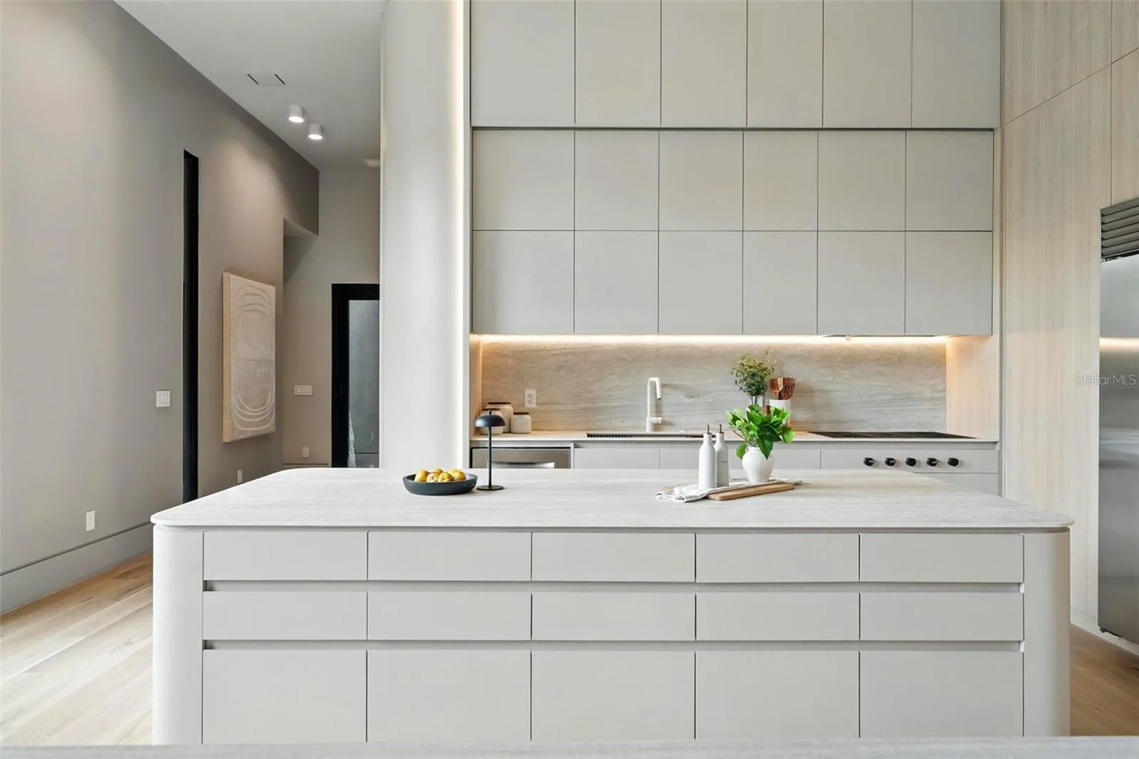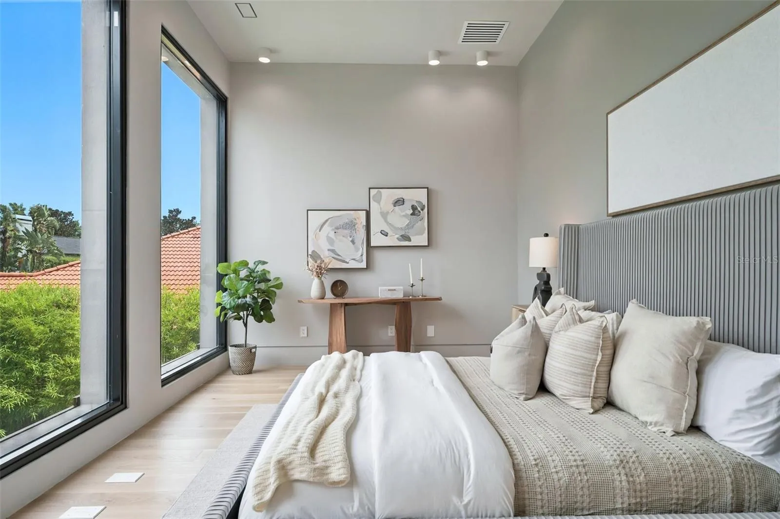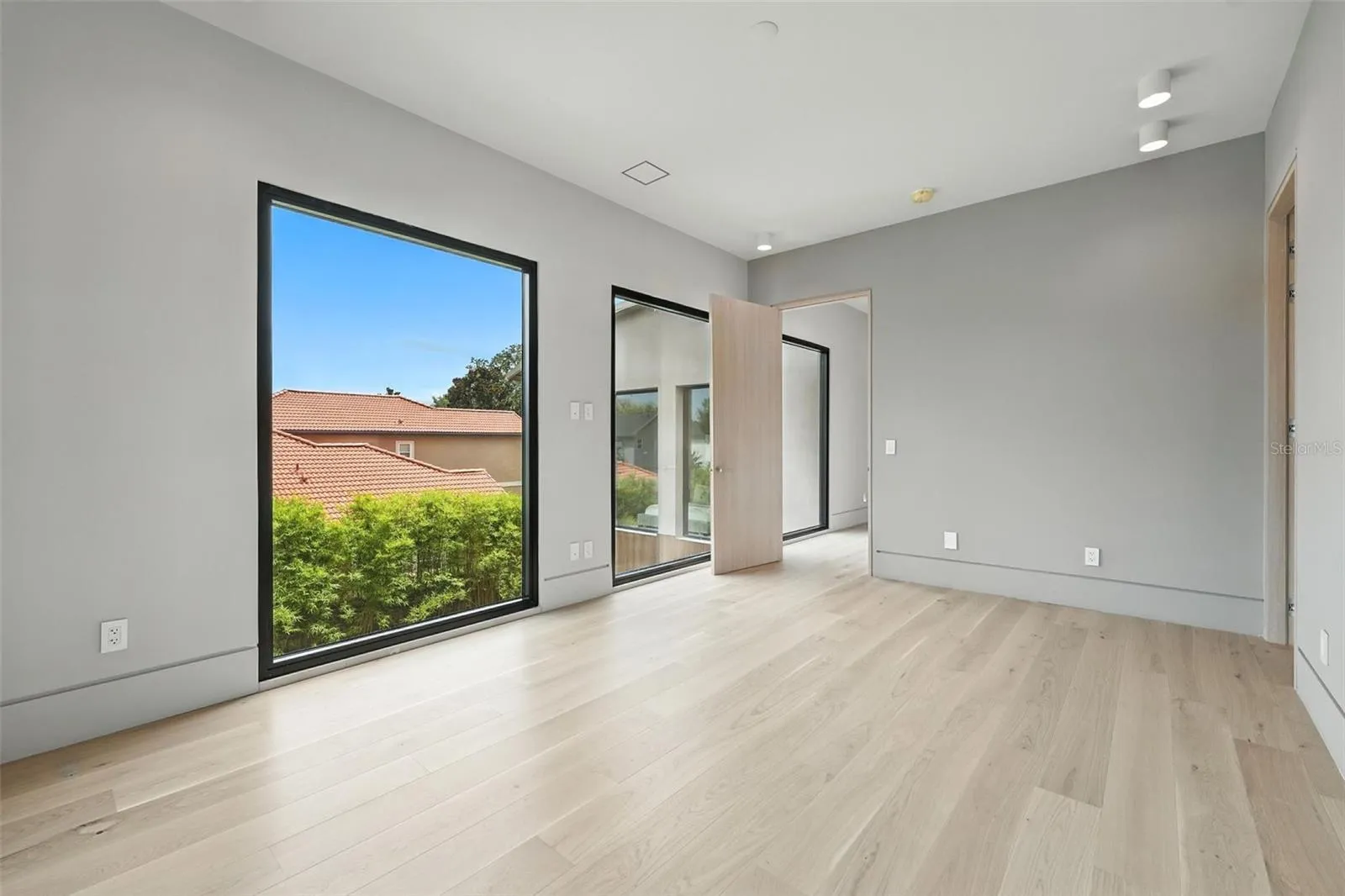 In one of Winter Park’s desirable neighborhoods, this stunning four-bedroom, five-bath modern masterpiece with Control4 automation offers a blend of luxury and function. Designed with sleek lines and open concept living, the home showcases Italian engineered wood flooring throughout, creating an elegant yet inviting atmosphere. Expansive windows flood the interiors with natural light, seamlessly connecting to the private outdoor oasis. At the heart of the home lies the chef’s kitchen, thoughtfully appointed with hidden storage, light-toned wood-look melamine cabinetry, sintered stone countertops, and premium Sub-Zero and Wolf appliances. Each bedroom is an en suite featuring spacious walk-in closets with custom stone shelving and Melamine finishes, while the baths are adorned with custom-made vanities, stone countertops and mirrors enhanced by indirect lighting. The backyard retreat is a tranquil haven with lush landscaping, a heated mini-pebble French gray swimming pool, and an outdoor barbecue area clad in sintered stone with an integrated grill and sink, ideal for relaxing or entertaining. Additional highlights include epoxy-finished garage floors with a metal-framed glass door, a concrete circular driveway accented with salt and pepper gravel, and the security of a whole-home generator. Ideally, a short distance to Winter Park Racquet Club and Interlachen, and just a mile from Park Avenue, this architectural masterpiece is ready to welcome you home. Contact us today to schedule your private showing.