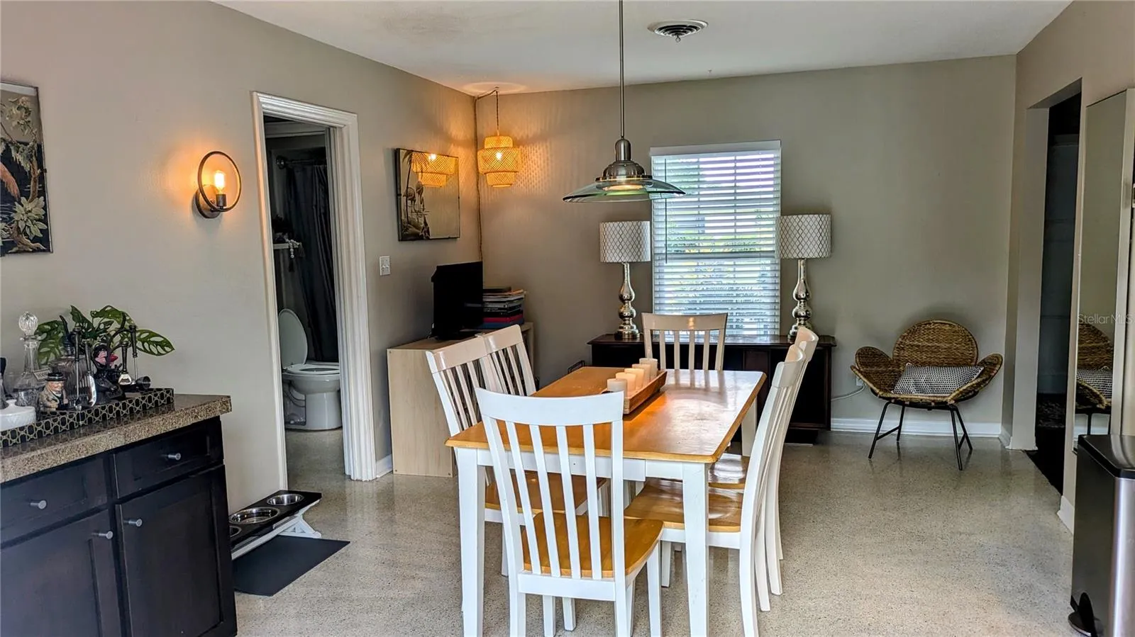 The bright, modern kitchen is equipped with granite countertops, ample storage, and seamless access to the dining area—an excellent setup for both cooking and hosting.