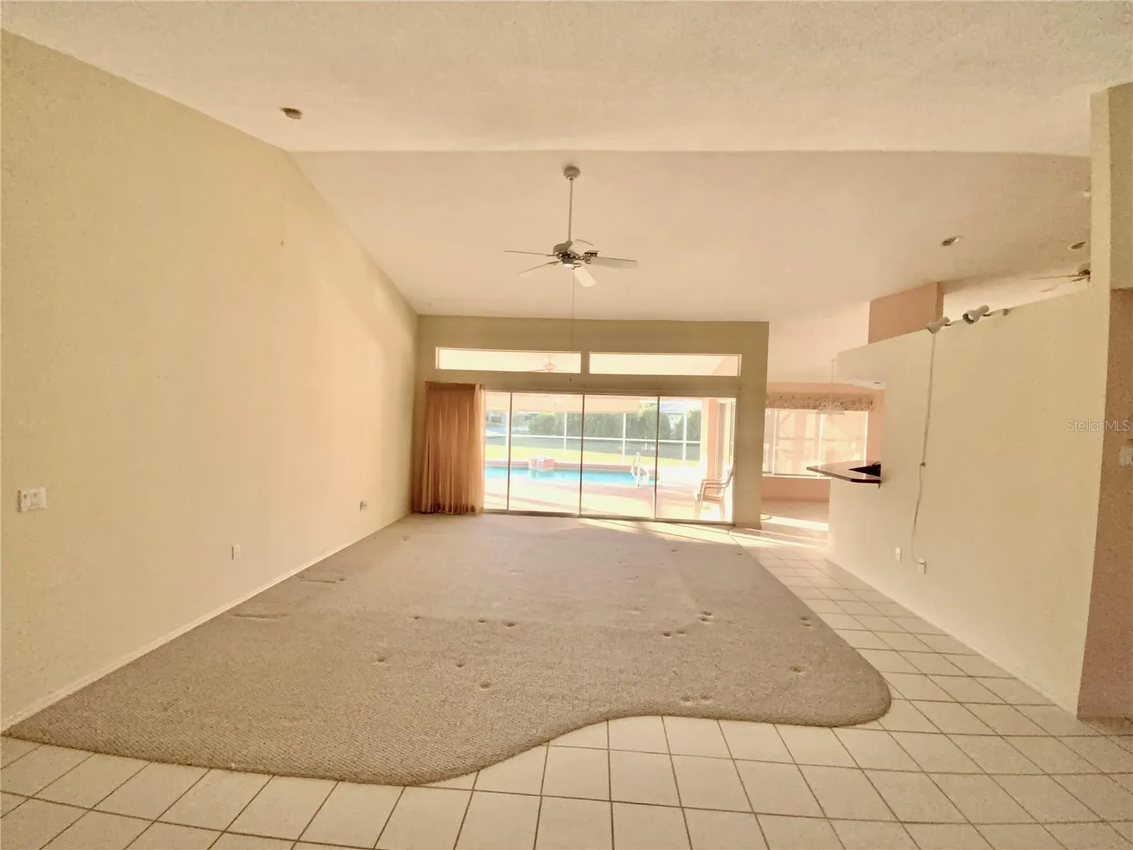 Step inside to over 2,012 sq. ft. of living space, highlighted by a bright and open floor plan. The living room features an entire wall of sliding glass doors that seamlessly blend indoor and outdoor living, opening directly to your sparkling private pool and screened lanai.