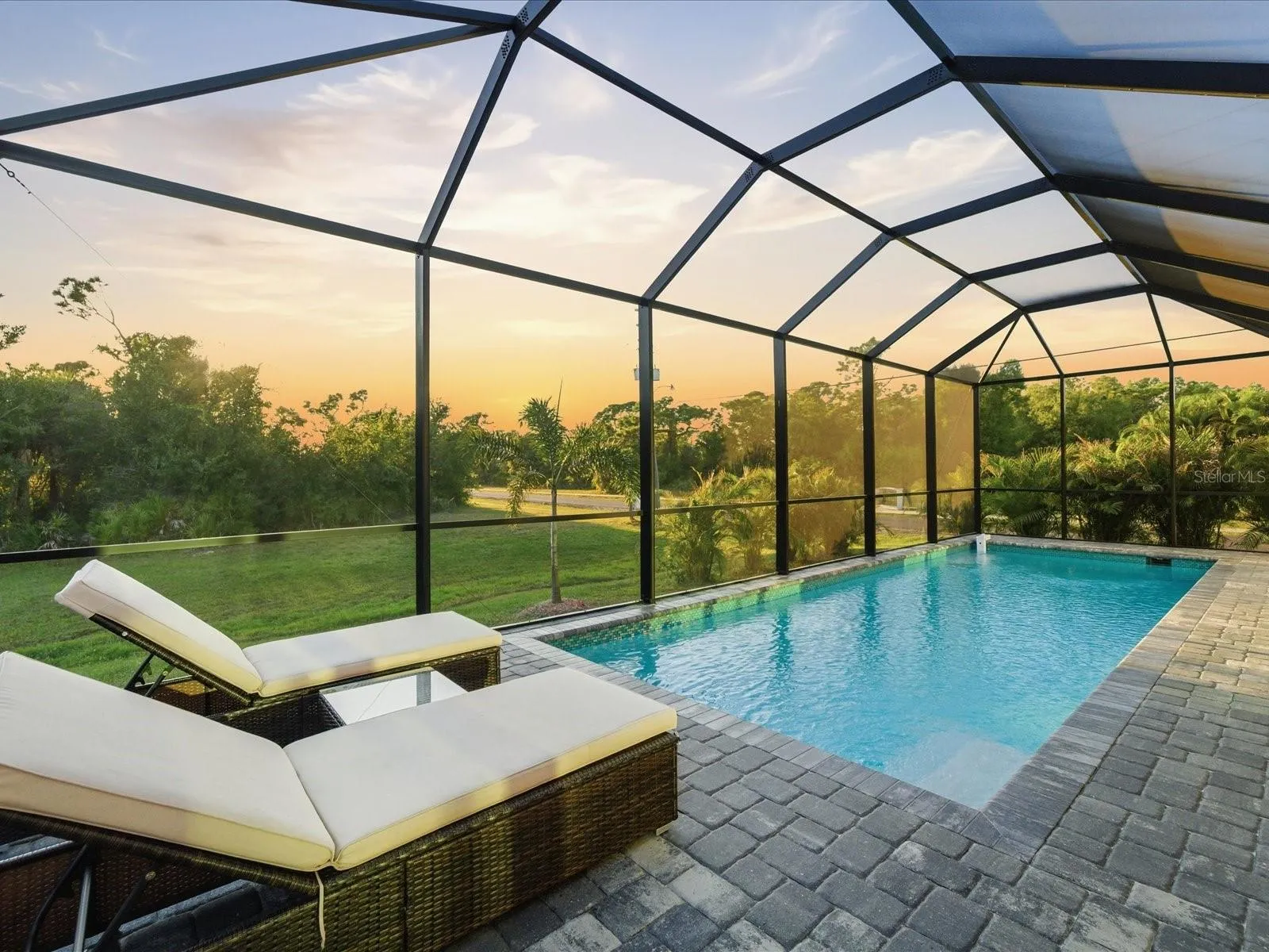 Step outside to your private tropical oasis! The sparkling pool boasts an impressive 28’ swimming length, and a pool heater ensures year-round enjoyment. The expansive 45’ full-width paver deck overlooks a peaceful greenbelt—an ideal setting for morning coffee or sunset cocktails.