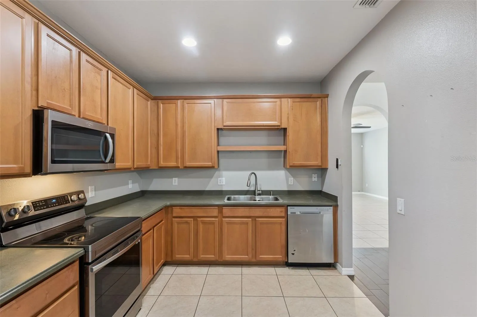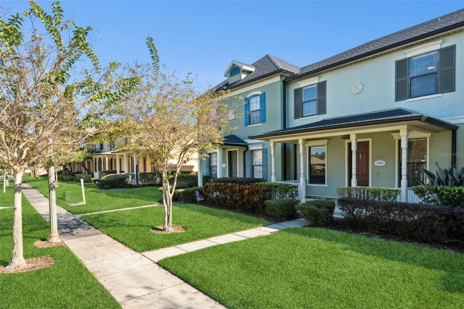 One or more photo(s) has been virtually staged. Situated in one of the only townhome communities in the heart of Hunters Creek, with this home you’re surrounded by top-rated schools, parks, recreational activities, and the always hard to find gem in Central Florida—shopping, dining options, medical offices, and essential services within walking distance. TOUR THE HOUSE WITH THE VIRTUAL TOUR and VIDEO WALK THROUGH LINKS. Step up to the charming front patio, where you can enjoy your morning coffee while greeting friendly neighbors out walking their pets. As you step inside, you’ll notice how spacious the family room and dining room are, with high ceilings, tiled floors, and bright natural light. The family cook will love preparing meals in the adjacent kitchen, which features plenty of storage space in the 42” inch wood cabinets, stainless steel appliances, and an elegant new fridge! Step out back to the private patio space between the house and the 2 car garage, where the blank canvas can become your future garden, relaxing oasis, or space to have dinner al fresco. Retreat upstairs to your primary suite, which features a lovely tray ceiling, large walk-in closet, and an en suite bathroom with dual sink vanity, soaker tub, and large tiled shower with seamless glass door. The two additional secondary rooms and full bath with a shower/tub combo round out the upper level. Other features include a new roof (2023), new water heater (2022), and new A/C (2019), and the washer and dryer convey with the house! You’re located just down the street from the neighborhood swimming pool and playground, included in the modest HOA fee, which also covers exterior maintenance like regular painting, landscaping, and roof. Plus, as a resident of Hunters Creek, you’ll enjoy access to the parks, playgrounds, tennis and basketball courts, baseball and soccer fields, dog park, walking trails throughout the larger neighborhood, and regular annual community events the neighbors all look forward to. Hunters Creek is situated in the perfect location to be able to get around Central Florida easily, whether it’s downtown for a concert or game, to Orlando International Airport, or to any of the local theme parks. Come discover your carefree living here at 13820 Beauregard Place today!