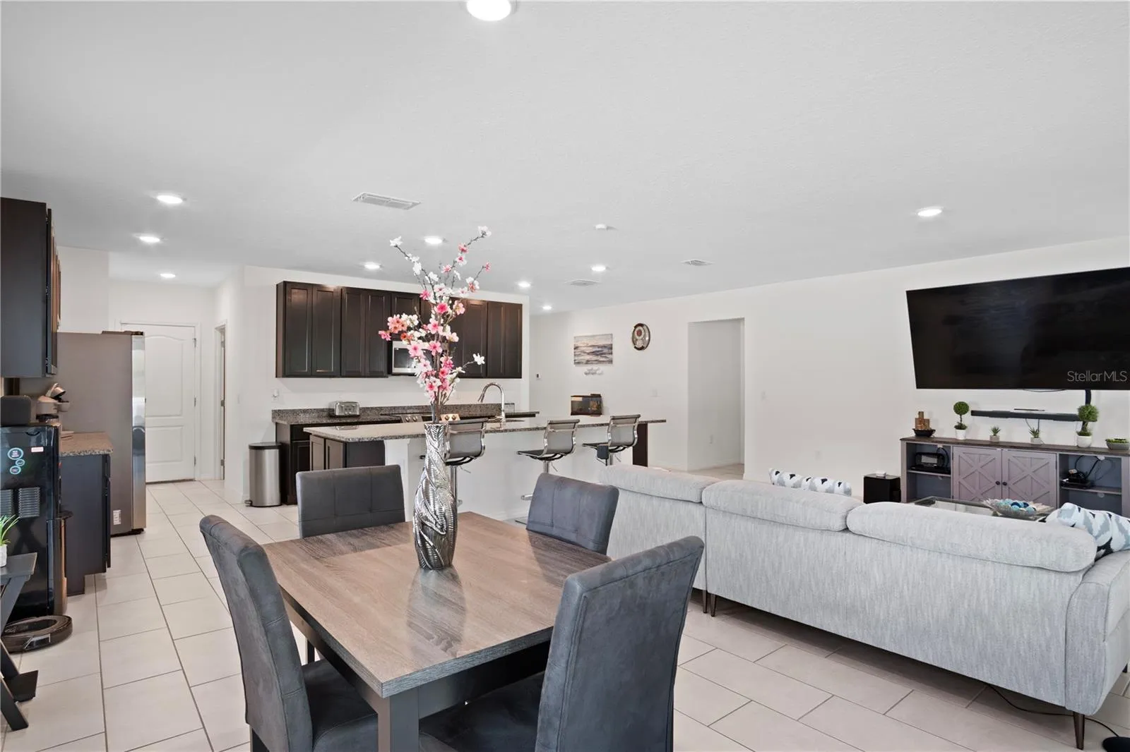 Step inside to a bright, open-concept layout highlighted by a large kitchen island, stainless steel appliances, and plenty of cabinet and counter space—perfect for cooking, hosting, or gathering with friends and family. The dedicated inside laundry room adds convenience and extra storage options.