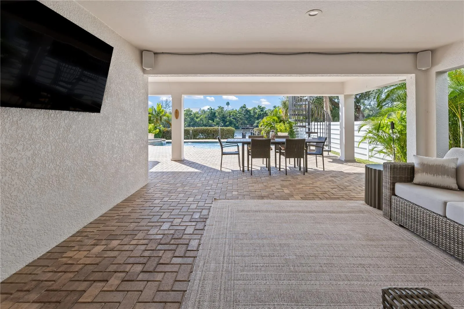 Beyond the walls, the outdoor experience has been elevated to resort standards. A brand-new lanai screen wraps the upper balcony, perfect for morning coffee or candlelit evenings overlooking the lagoon. The tropical pool area has been revitalized with new pool equipment and LED lighting, enhancing both performance and nighttime ambiance. A convenient kayak and paddleboard launch invites you to explore the tranquil waters just steps from your backyard. The IPE dock remains a serene vantage point for sunset reflections, while the lush grounds now include a private basketball court—a rare lifestyle amenity on Siesta Key.