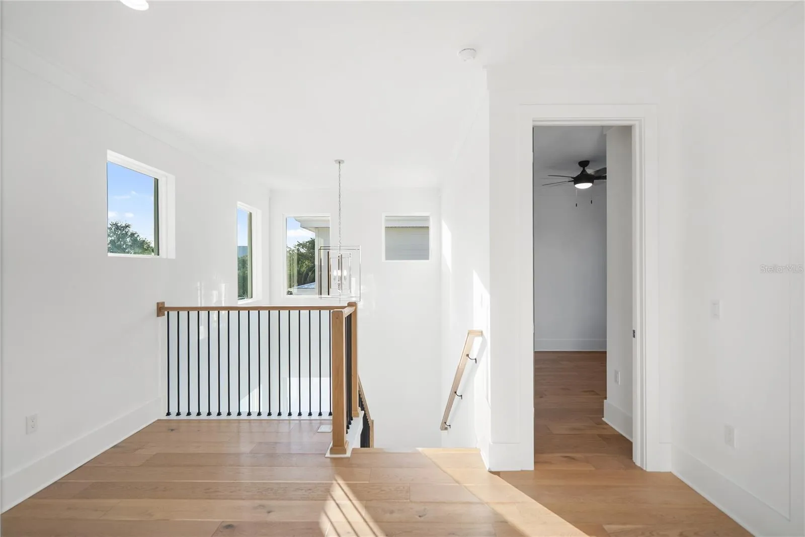 Upstairs, find three generous guest bedrooms, a luxurious full bathroom, and a versatile loft area with ample storage. The bonus landing area is perfectly designed to be utilized as a dedicated open-plan office space for remote work.