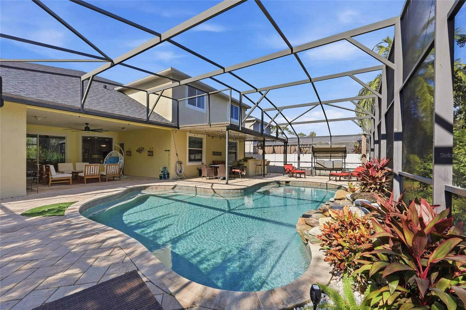 Step inside this stunning 5-bedroom, 4-bath M/I “Brookshire II” home, designed for both relaxation and entertaining. You’ll love spending time outdoors in the screened, solar-heated pool, alongside a brand NEW pool heater pump (2025) to get the temp just right. Best part…your very own zipline built for the pool (2022). Complete with a summer kitchen and extended covered lanai — the perfect spot to sip on coffee as your day gets started, unwind with a glass of wine after work, or host family and friends year-round.