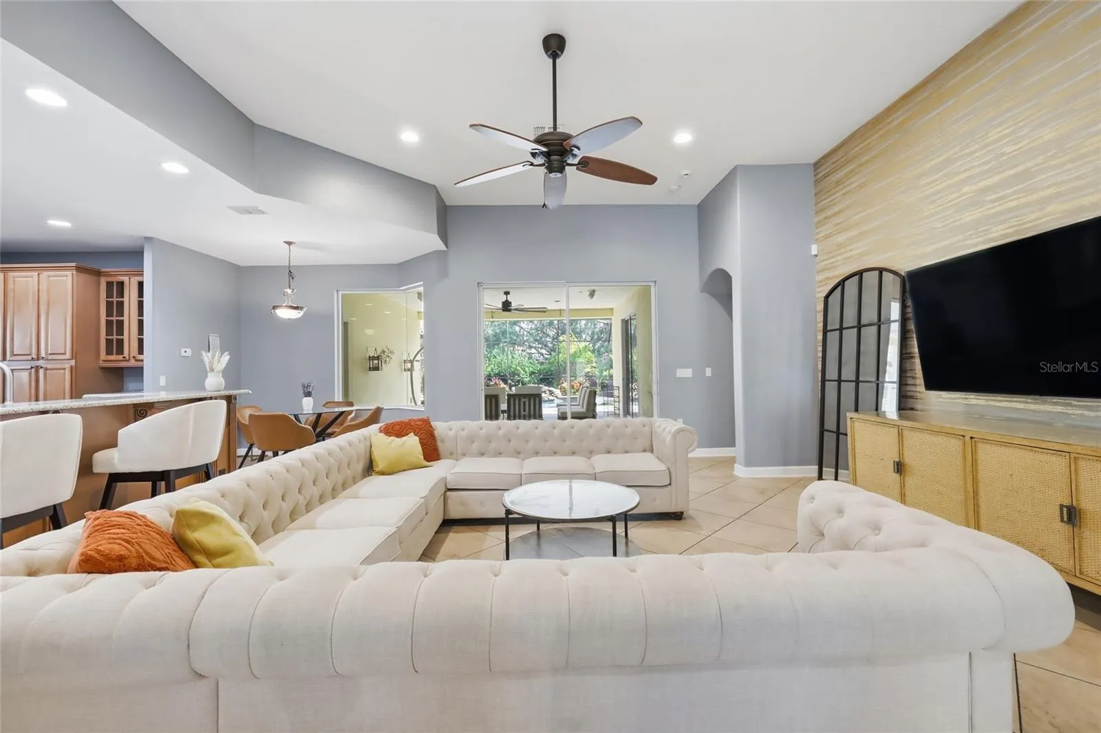 The heart of the home is the open-concept kitchen and great room, filled with natural light and overlooking the pool. The kitchen will delight any home chef with 42″ cabinetry, granite countertops, a large island, double ovens, a Bosch dishwasher, stainless appliances, water you can drink from the faucet, as you have a whole house water purifier (2021) and your very own wine fridge (2022). A cozy dinette with oversized windows offers peaceful pool views, while the formal living and dining rooms provides spacious room for relaxing, family get togethers or hosting a party for all your friends.