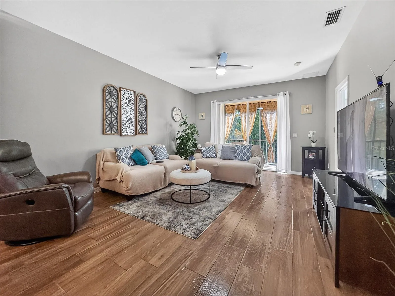 The open-concept living area flows seamlessly to the screened-in back porch, where you can unwind while taking in the serene views of the pond and golf course. It’s the perfect place to relax after a long day.