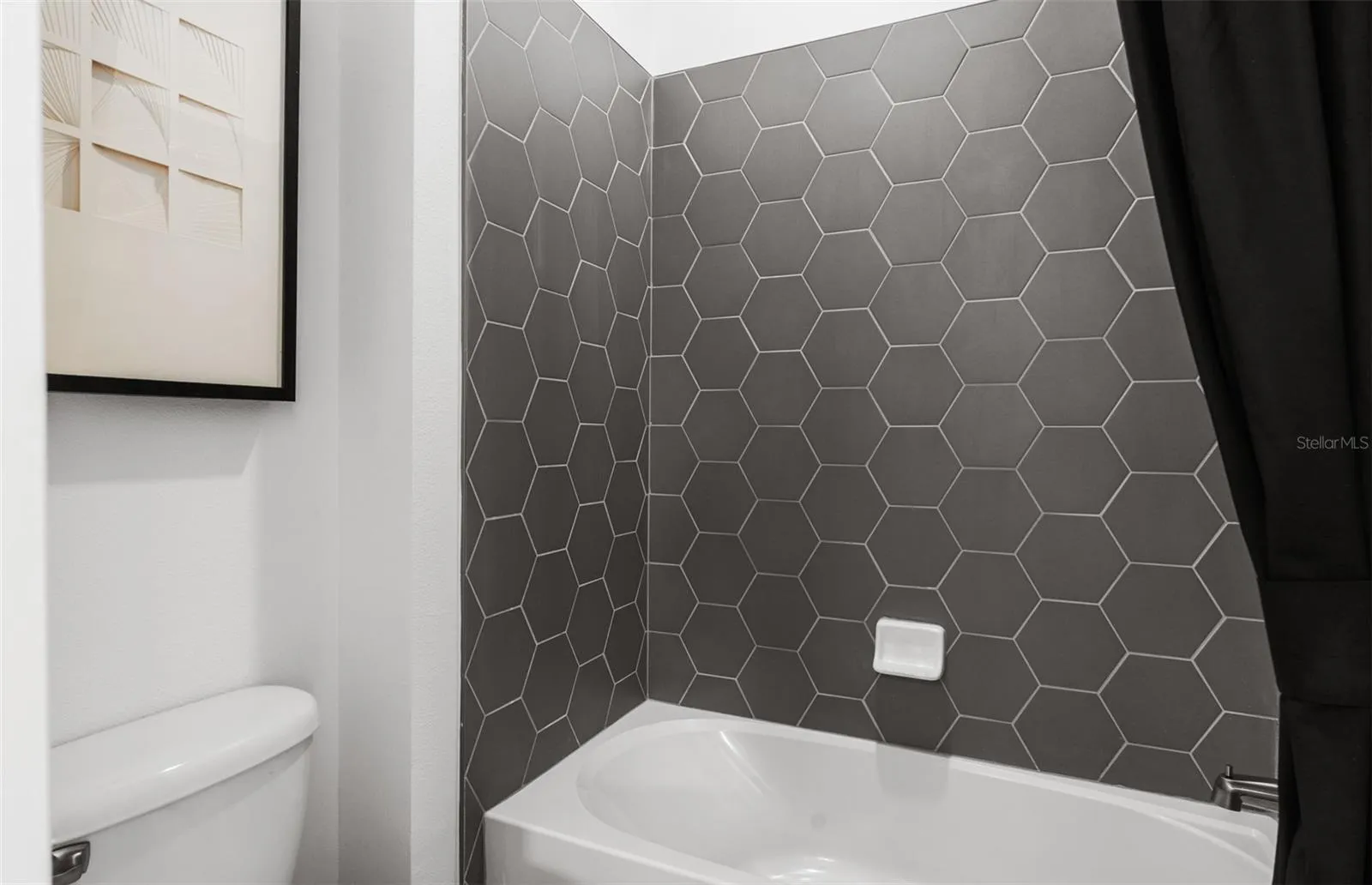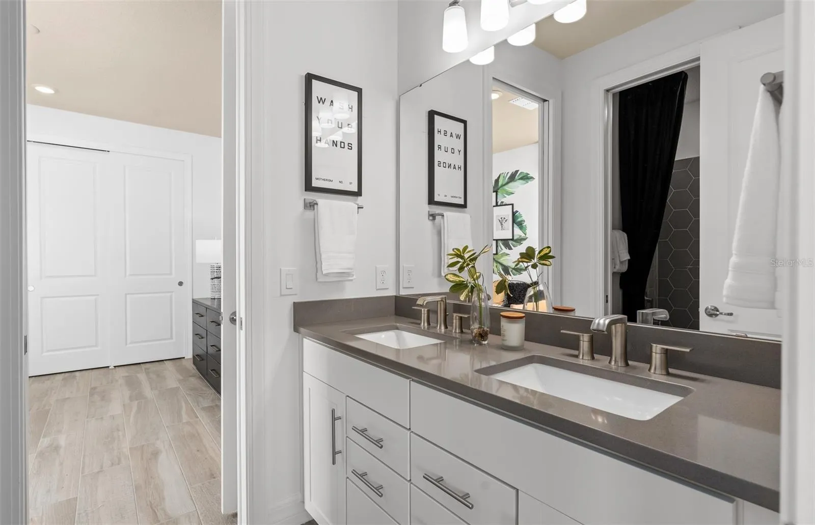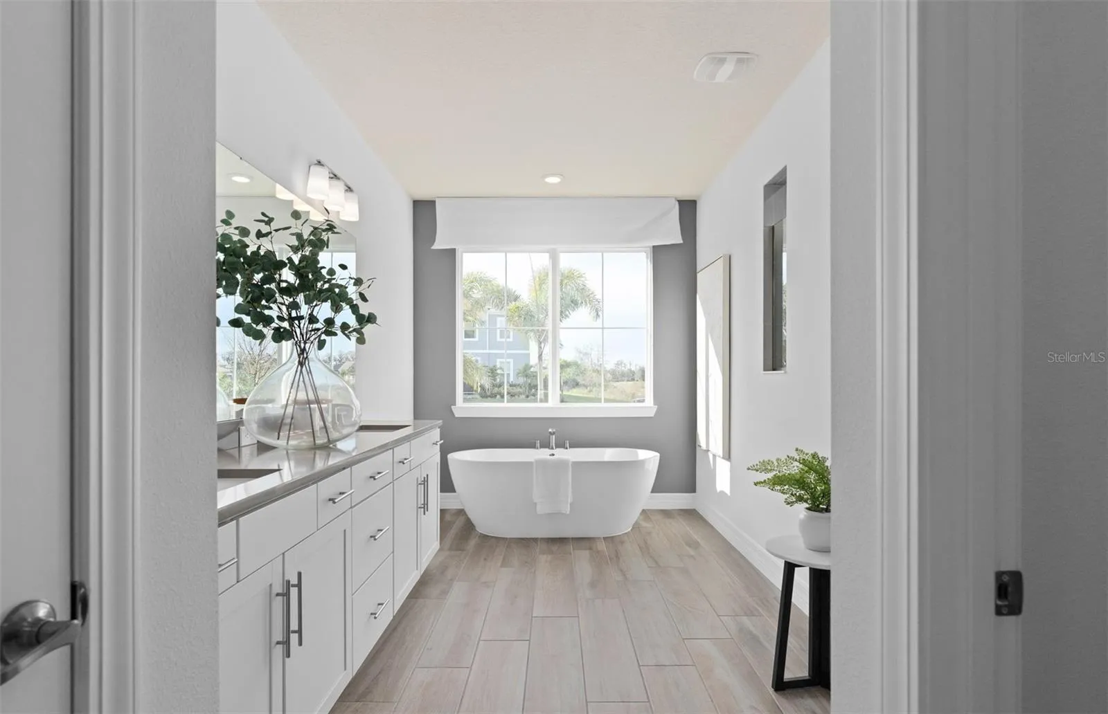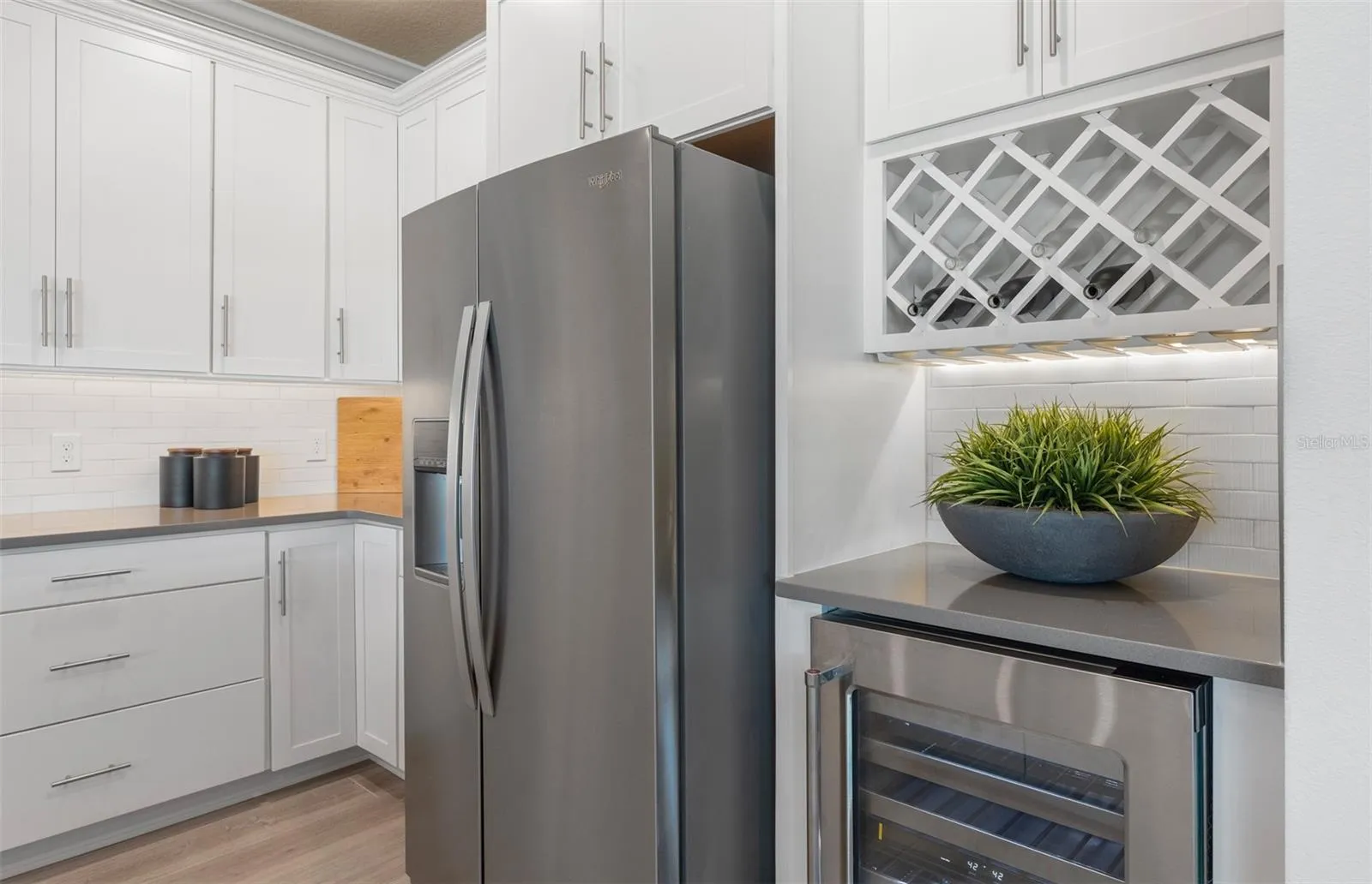 Step into the Berkley Home by Pulte, a stunning single-story home offering 4 spacious bedrooms, an enclosed flex room, 3-bathrooms, and a 3-car garage. As you step through the front door with its decorative glass insert the foyer is flooded with natural light, setting the tone for the entire home. The open-concept layout seamlessly connects the gourmet kitchen, café, and gathering room, creating an airy atmosphere. The zero corner sliding glass door leading to the covered lanai (with outdoor kitchen pre-plumb and pool pre-wire) bathes the entire space in sun light, while the tray ceiling in the gathering room, complementing the tall ceilings, adds an extra touch of sophistication elevating the overall feeling of openness. The heart of the home is the chef-inspired kitchen, where Winstead White cabinetry meets luxurious quartz countertops. Thoughtfully designed features like soft-close drawers, easy-reach corner cabinets, double roll-out trays, and a waste basket drawer make the kitchen as functional as it is beautiful. A decorative tile backsplash and stainless-steel single bowl sink enhance the space, while the KitchenAid stainless steel appliances—including a refrigerator and built-in natural gas cooktop—ensure you have everything you need for both everyday meals and special occasions. Retreat to the luxurious owner’s suite, a serene sanctuary with double walk-in closets and a spa-like en suite bathroom. Quartz topped dual vanity sinks, a walk-in shower with built-in bench and rain shower head, free-standing tub, an enclosed toilet, and a linen closet complete the tranquil space. The remainder of the Berkley includes three additional spare bedrooms – two of which share a jack and jill bathroom, a pool bath, and an enclosed flex room providing ample space for guests and loved ones. The spacious laundry room includes built-in cabinetry, a utility sink trimmed in quartz, and Whirlpool washer and dryer make daily tasks a breeze. Designer-curated finishes elevate every corner of this home, including wood-look tile throughout the entire home, under cabinet lighting in the kitchen, brushed nickel hardware and plumbing fixtures, comfort height toilets, and 2” faux wood blinds. Enjoy the convenience of modern living with smart thermostat, video doorbell, digital IP Camera Pre-Wire, and LED downlighting. With its stunning design and thoughtful touches, the Berkley Home provides the perfect blend of luxury and functionality for today’s lifestyle.