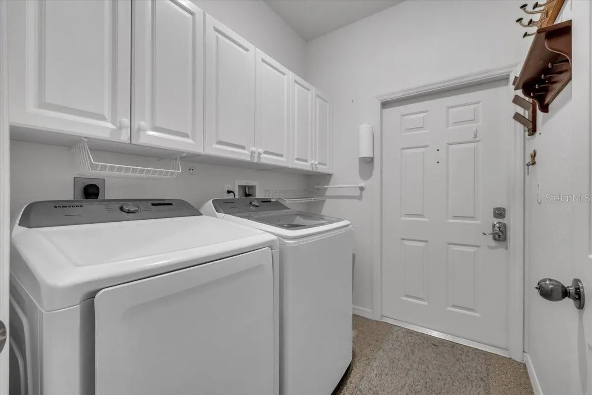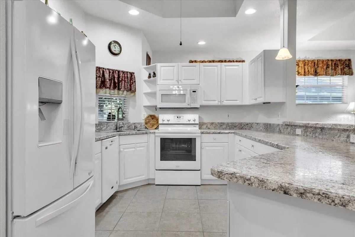 Welcome to Heritage Oak Park—one of Port Charlotte’s most sought-after gated communities, known for its majestic mature oak trees and vibrant, active lifestyle. Situated on the left side of a well-kept duplex, the villa features its own spacious two-car garage, a wide driveway, and lush mature landscaping that enhances its charming curb appeal. Stately trees provide natural shade, while a thoughtfully designed garden bed creates a serene and welcoming front entry. Inside, this lovely 2-bedroom, 2-bath villa offers 1,561 sq. ft. of well-planned living space, ideal for those seeking a low-maintenance lifestyle in a peaceful community. Step into a bright, open living area with vaulted ceilings, neutral tile flooring, and large sliding glass doors that lead to the screened lanai overlooking tranquil greenery. Multiple windows flood the home with natural light, and a ceiling fan adds both style and comfort. The spacious living room flows seamlessly into the dining area and kitchen. Enjoy cooking and entertaining in the well-appointed kitchen featuring crisp white raised-panel cabinetry, modern appliances including a new range, expansive countertops, a built-in desk area, and a raised breakfast bar with pendant lighting—perfect for casual meals or social gatherings. The split-floor plan ensures privacy. The primary suite has private lanai access and large walk-in closet. Step into this thoughtfully updated primary bathroom featuring a spacious dual-sink vanity with modern rectangular vessel sinks, sleek countertops, and abundant drawer and cabinet storage. A large, framed mirror and contemporary lighting create a bright, inviting atmosphere. The walk-in shower offers a clean, modern tile finish with built-in shelving and an easy, open entry. The two guest bedrooms are generously sized and offer versatility for family, visitors, or a home office and share a full bathroom. Enjoy the Florida lifestyle with two screened outdoor spaces—a cozy front porch and a peaceful back lanai, ideal for relaxing, reading, or entertaining. Additional highlights include a new roof (2019), new HVAC (2021), hurricane shutters, an indoor laundry room with pantry and cabinetry, and a two-car garage. Residents of Heritage Oak Park enjoy maintenance-free lawn care and resort-style amenities, including a sparkling pool, clubhouse, fitness center, tennis courts, and scenic walking paths beneath the community’s signature oak canopy. Perfectly located near shopping, dining, medical centers, and just a short drive to the Gulf beaches, this villa offers the ideal combination of comfort, convenience, and classic Florida charm. Experience the peaceful, oak-lined beauty of Heritage Oak Park—where every day feels like a getaway. **PLEASE ENJOY THE 3D INTERACTIVE VIRTUAL TOUR ASSOCIATED WITH THIS LISTING**