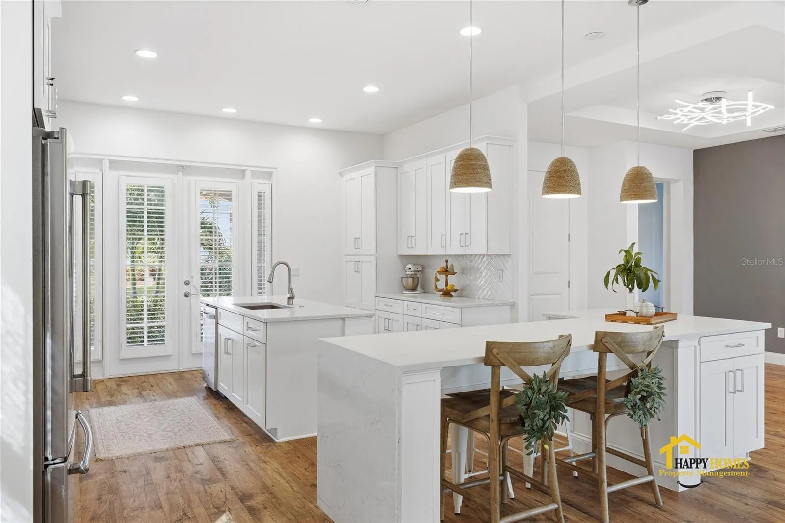 One or more photo(s) has been virtually staged. This stunning five bedroom residence offers over 4211 square feet of refined living space in the highly desirable Eagle Creek community. Thoughtfully designed for both comfort and sophistication, the home features high end finishes throughout and an expansive open layout that flows seamlessly to the outdoors. Sliding glass doors create a true indoor and outdoor connection, opening the main living area to a beautifully private and fully fenced yard. With generous room sizes, elegant design selections, and exceptional craftsmanship at every turn, this property embodies the elevated Lake Nona lifestyle and provides an ideal setting for both everyday living and memorable entertaining.