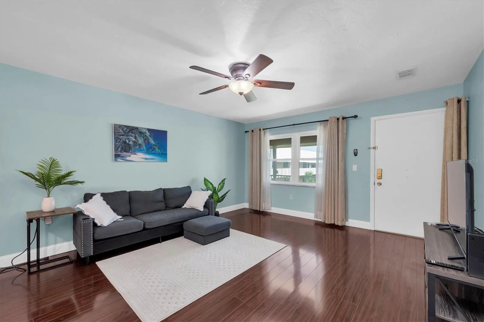 Welcome to this 2/2 in a WATERFRONT GATED Community. Highly active community with lots to do and many amenities. Fully gated secure complex with onsite guard. No need to worry about footsteps from above with this top floor unit. The unit was fully remodeled about six years ago is well maintained and includes Hurricane Impact Windows, new floors, kitchen and appliances. The kitchen has custom touches including granite countertops, beadboard ceilings, wine cubbies, slide out shelf, Samsung gas range and stainless-steel Samsung side by side fridge. The bathrooms have been fully updated including a step-in shower with rain head shower in the master suite. Ceramic tile in the kitchen and bathrooms and composite laminate flooring throughout. Ceiling fans in all main rooms. Beautiful garden views of the courtyard out of your living room window. The unit is furnished and ready to move in and includes a covered carport. The Rent INCLUDES Internet, Cable TV, free natural gas for the heater, and stove and community hot water tank never runs out and no charge! The other reason to love this place is the warm community feel and long list of amenities. Huge auditorium for shows and dances, HEATED swimming POOL with separate jetted SPA, social bar, morning coffee, huge library, card room, billiards, ping pong, foosball and well-equipped workshop for your wood working hobbies. Fitness facility with plenty of stationary machines and free weights. tennis courts, PICKLE BALL, bocce ball, shuffleboard and nature walking path around the complex with areas to launch a Kayak or Paddle Board. If this isn’t enough the bike trail and Seminole Waterfront park with kayak launch are minutes away. Close to plenty of Shoppes, restaurants, Seminole Mall and minutes to the beach!