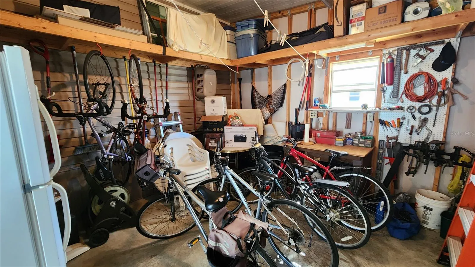 Immaculately maintained and MOVE-IN ready! Close proximity to clubhouse amenities & pool. This MUST-SEE 2010 Jacobsen home, built by Bay Manufactured Homes, offers 2 bedrooms, 2 bathrooms, and 1,068 sq ft of comfortable under-air living space. The home is being sold fully furnished (with seller removal of personal items and select artwork), making it an effortless transition for its next owner. From the moment you enter, you’ll appreciate the open and airy layout featuring an inviting living room and kitchen combination—an ideal space for both everyday living and entertaining. A light-filled Florida/Veranda room, lined with windows, offers the perfect bonus area for gatherings, morning coffee, a hobby studio, home office, or relaxing reading nook. This home shines with numerous updates, including HVAC (2022), Refrigerator (2023), Dishwasher (2019), and Washer (2022). Every room equipped with a ceiling fan has recently fans, and the easy-care laminate flooring throughout means no carpet to worry about. The spacious primary bedroom accommodates a full King suite, while the second bedroom comfortably fits a Queen suite. You’ll love the convenience of the 14′ wide driveway and carport, providing plenty of covered parking space. Storage is never an issue thanks to the oversized 14×14 storage shed—perfect for bikes, tools, beach gear, and more. The shed even includes a second refrigerator/freezer for added convenience.