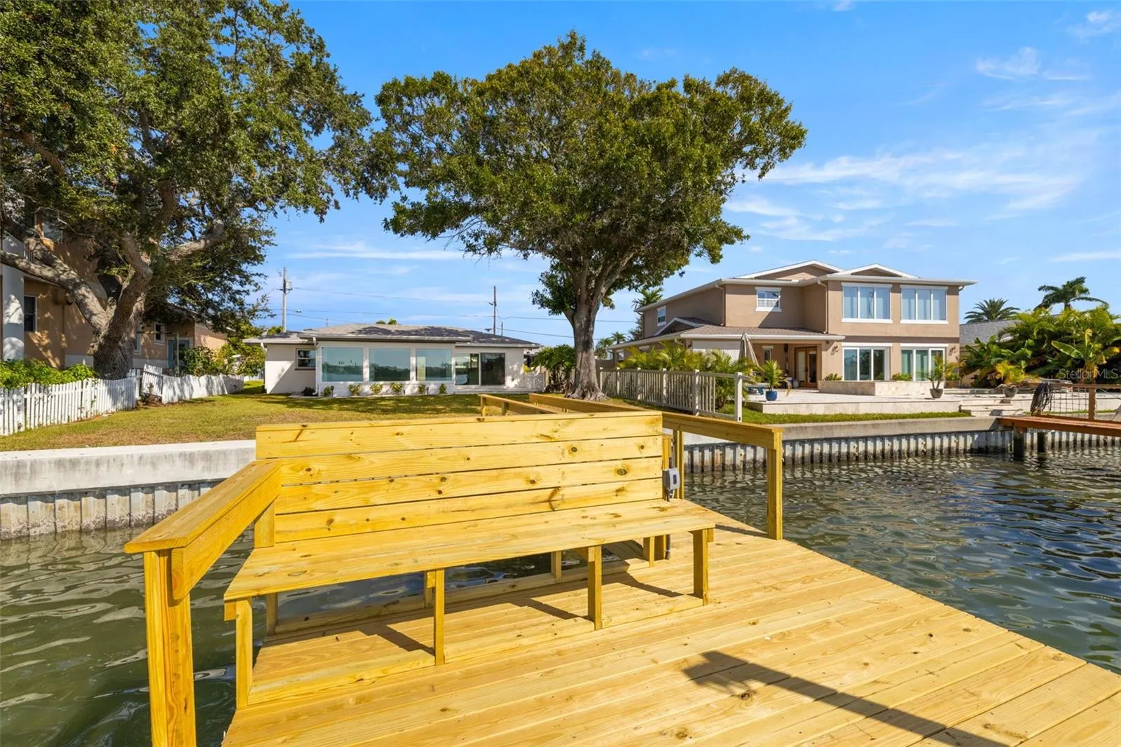 Boaters and water-sport enthusiasts will love the big-water feel yet the protected cove and the privacy of not facing neighbors like so many across some narrow canal. Step out to your updated seawall (2024) and brand-new dock (2025) with built-in bench seating, power, and water, then launch your boat, kayak, paddleboard, fishing or jet ski into calm bay/harbor water with direct access to the Intracoastal and Gulf. There is ample yard space to add a future pool overlooking the water, creating an even more compelling indoor-outdoor experience.