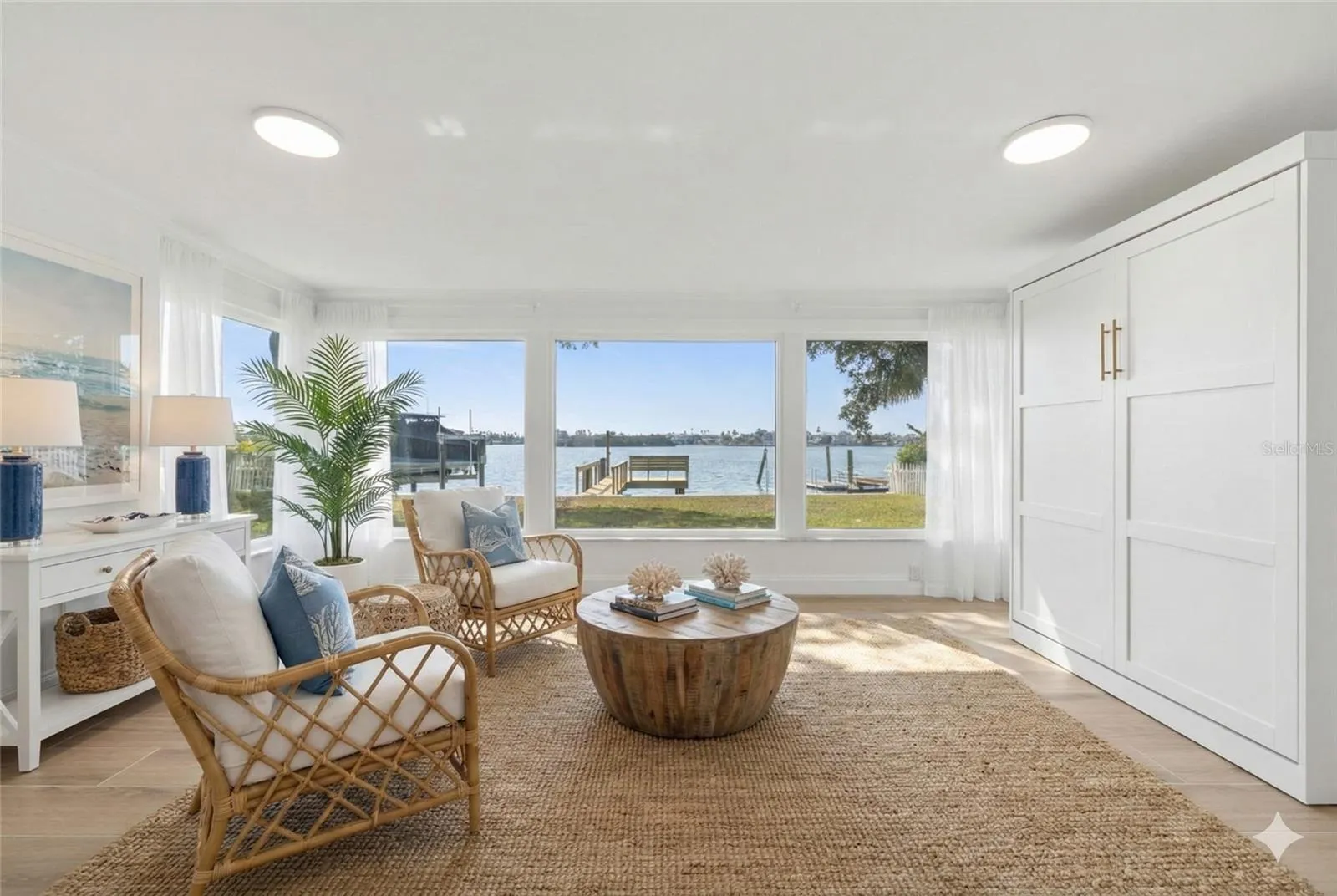 One or more photo(s) has been virtually staged. Turn-key charming Indian Rocks Beach waterfront home with no rental duration limits, ideal for buyers seeking a flexible short-term rental, a boating retreat, or an easy-care IRB beach house. This fully remodeled 2 bed/2 bath home plus large water-view flex room (17′ x 13′) sits on a wide, west-facing cove with panoramic waterviews, incredible sunsets, and easy access to the Gulf.