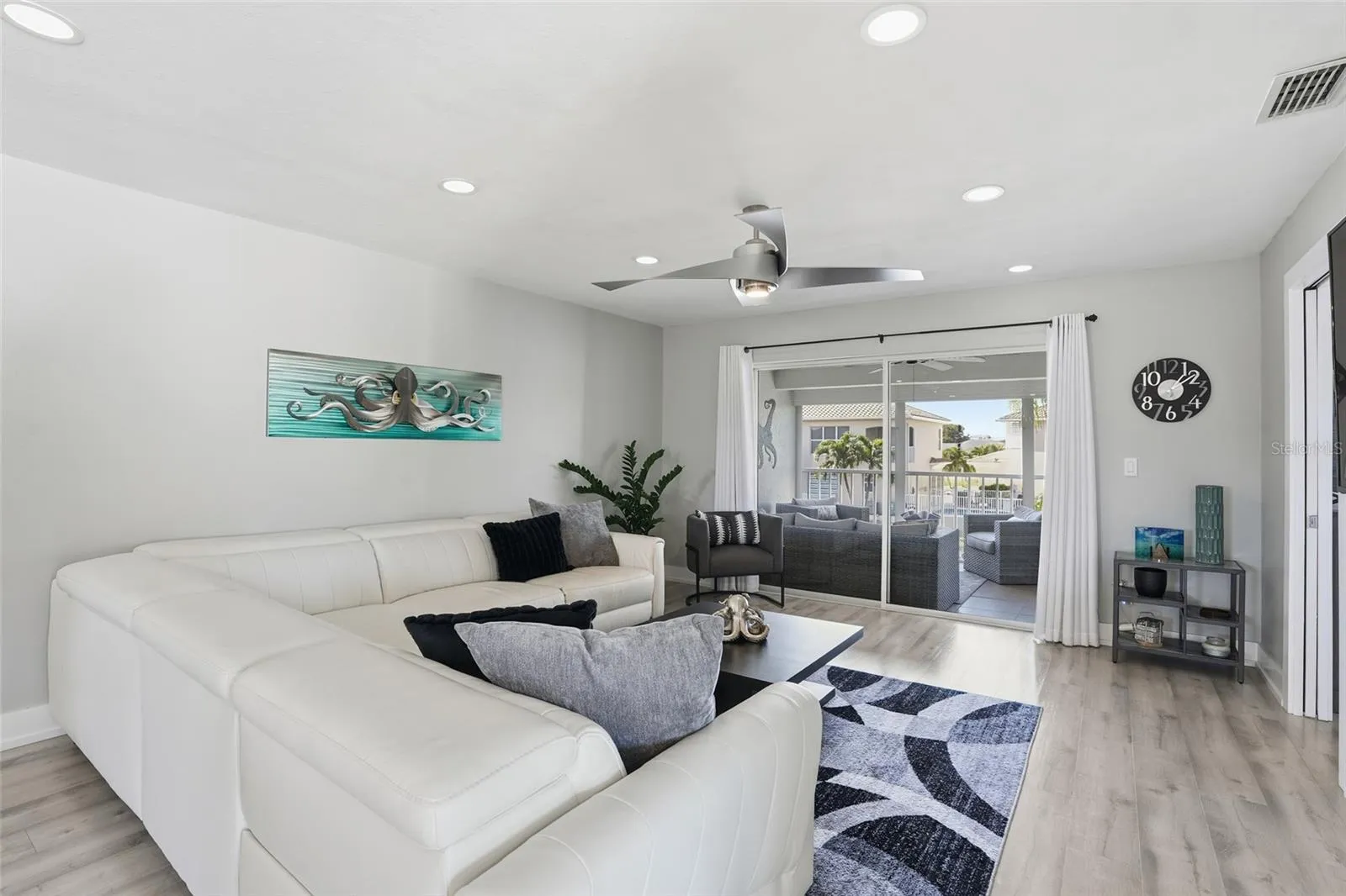 Welcome to 5102 Coronado Parkway #2, an exceptional waterfront retreat in the sought-after Club Abaco Condo community—where modern luxury meets effortless coastal living. Perfectly situated in the heart of Cape Coral’s desirable Yacht Club area, this fully remodeled 2-bedroom, 2-bathroom residence offers a rare blend of timeless elegance, comfort, and convenience—just minutes from open Gulf waters, world-class dining, and boutique shopping. Step inside to discover a bright, open-concept living space filled with abundant natural light and sleek high-end finishes. The gourmet kitchen features designer gray cabinetry, stainless steel appliances, quartz countertops, and an oversized island ideal for entertaining. The spacious living area flows seamlessly to a screened-in balcony overlooking the sparkling canal—complete with electric hurricane shutters for peace of mind and year-round comfort. The primary suite provides a serene escape with a spa-inspired ensuite bath and a stylish, modern aesthetic, while the guest bedroom offers the perfect retreat for visitors. Every detail has been thoughtfully curated—from the luxury flooring and contemporary fixtures to the crisp, neutral color palette that complements the waterfront backdrop. Enjoy the ultimate Southwest Florida lifestyle with boating access right outside your door, where dock space is available for lease through the HOA, allowing you to cruise to open waters within minutes. Club Abaco’s prime location places you close to Cape Coral’s finest restaurants, marinas, and resorts—making it an exceptional opportunity for a move-in-ready home, seasonal retreat, or investment property. Come experience canal-front living redefined—sophisticated, low-maintenance, and distinctly coastal!