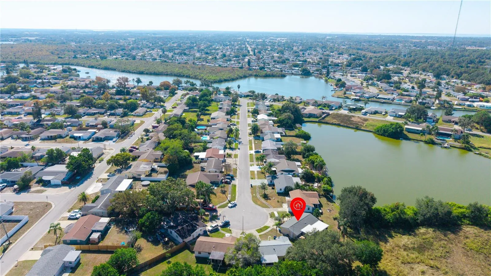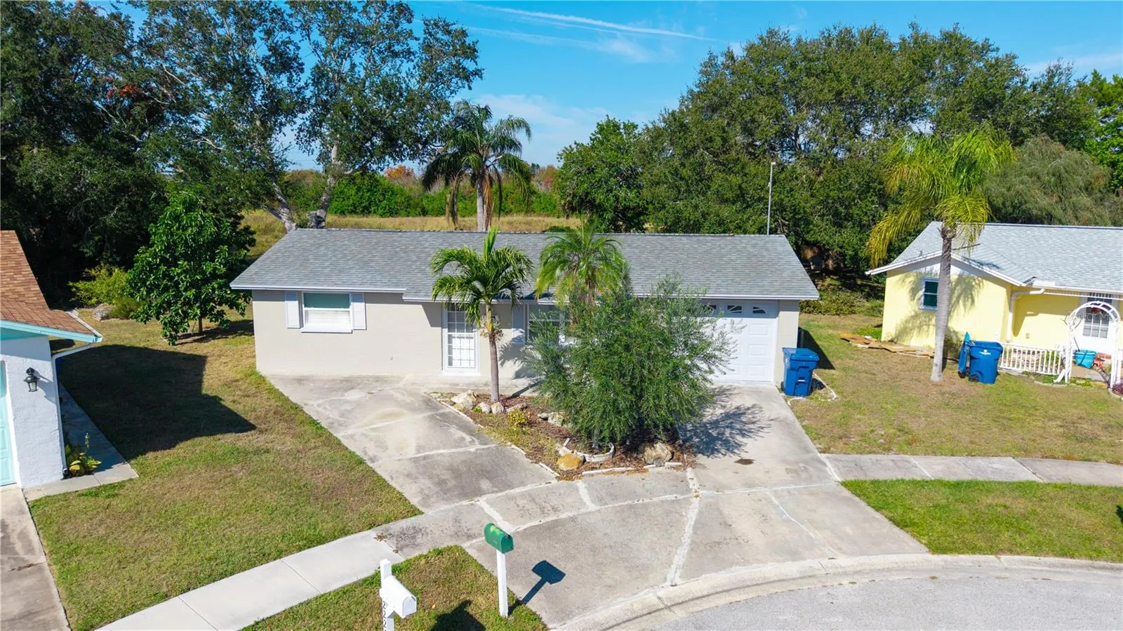 WOW! LOCATION! This 2 bedroom 2 full baths shows like a model and is located on a dead-end CUL-DE-SAC Street with no rear neighbors! Home features: Newer roof, HVAC, double pane windows, hurricane slider doors, blinds, water heater, garage door and opener, built-in kitchen desk, breakfast bar with wine rack and shelves, built-in kitchen cutting board, lots of kitchen cabinets, extra hallway closets, tile throughout, built-in garage cabinets, garage side door, lots of garage cabinets and work bench, double driveway for lots of parking, large back yard, outdoor open patio area, outdoor shed, very sunny open den with a very large 15X20 fully enclosed lanai overlooking a Lake Conley and woods. NO FLOOD! FLOOD ZONE X. (home has never been flooded). NO HOA! NO CDD!