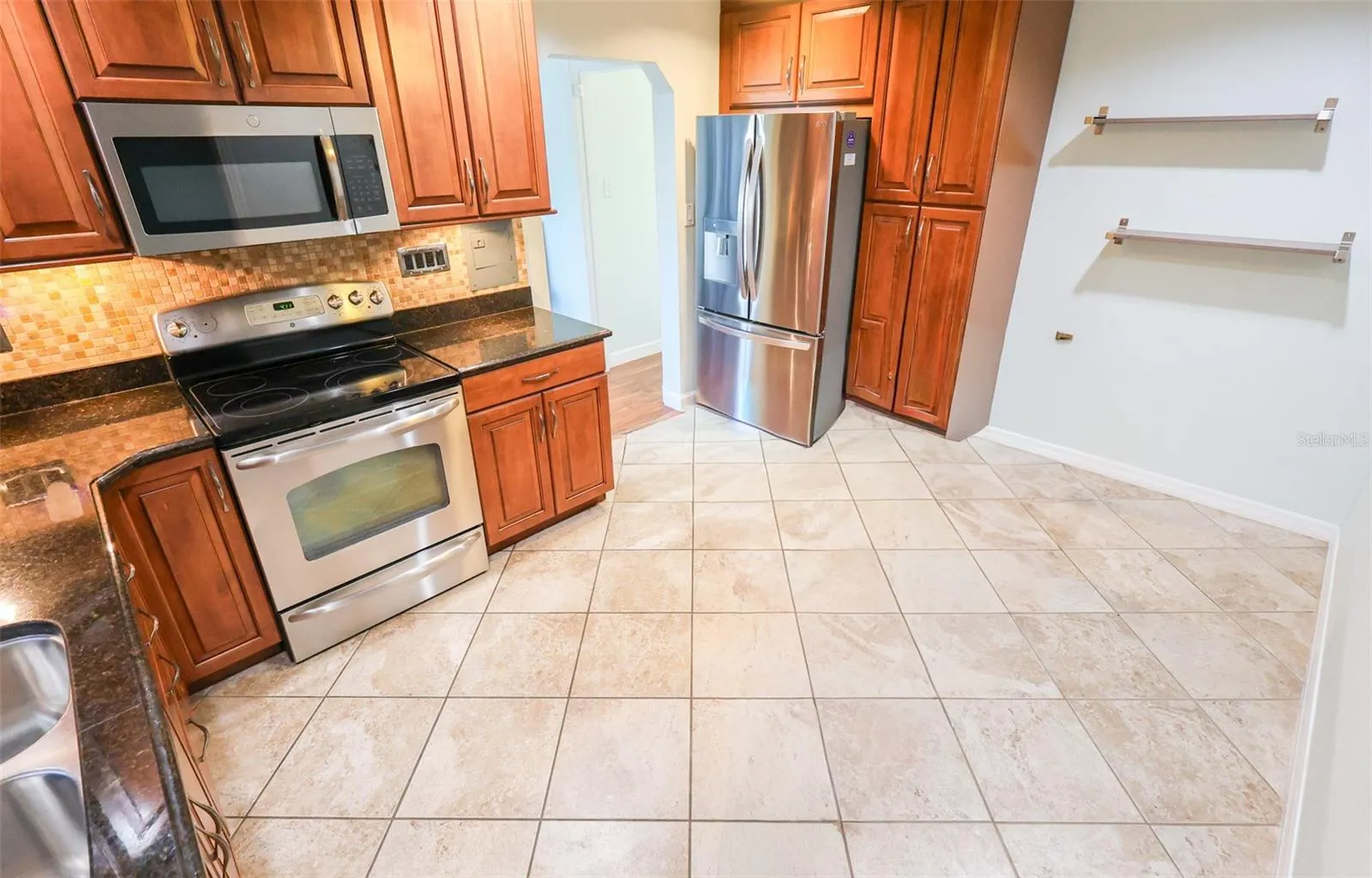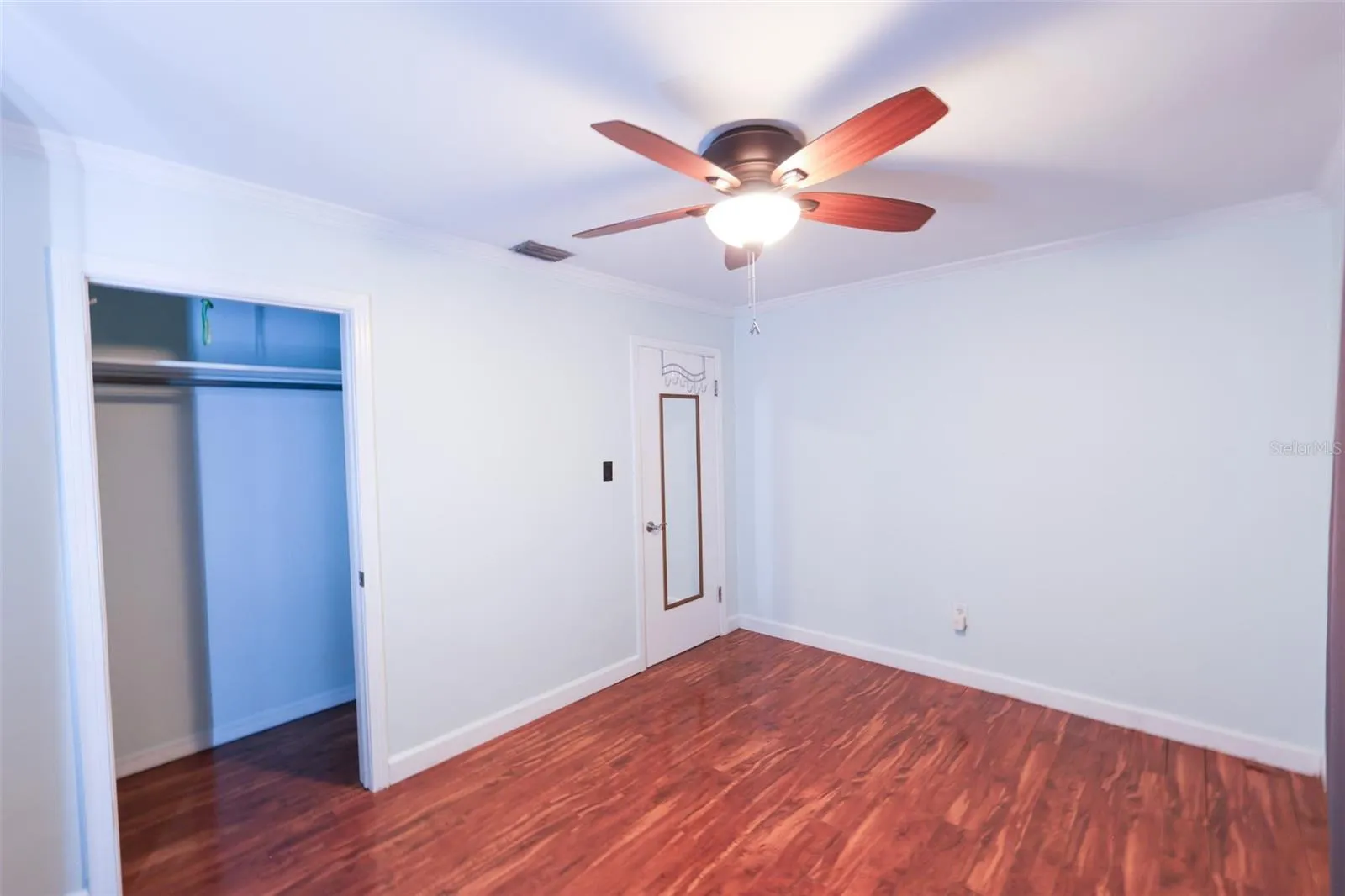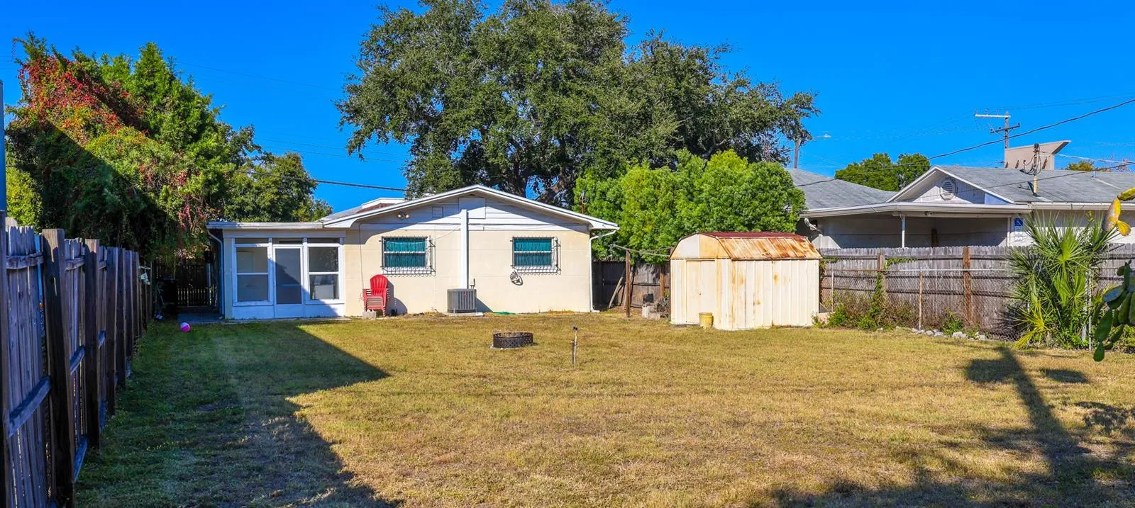 The spacious primary suite includes a walk-in closet and a contemporary en-suite bathroom complete with updated tile and a glass-enclosed shower. Two additional bedrooms provide flexibility for guests, a home office, or a nursery. Step outside to the fully fenced large backyard, a perfect setting for outdoor dining, gardening, or simply enjoying the Florida sunshine.