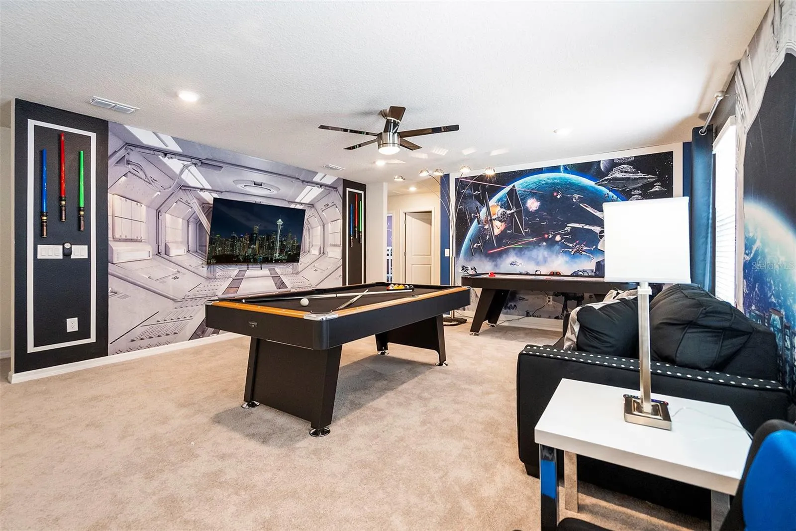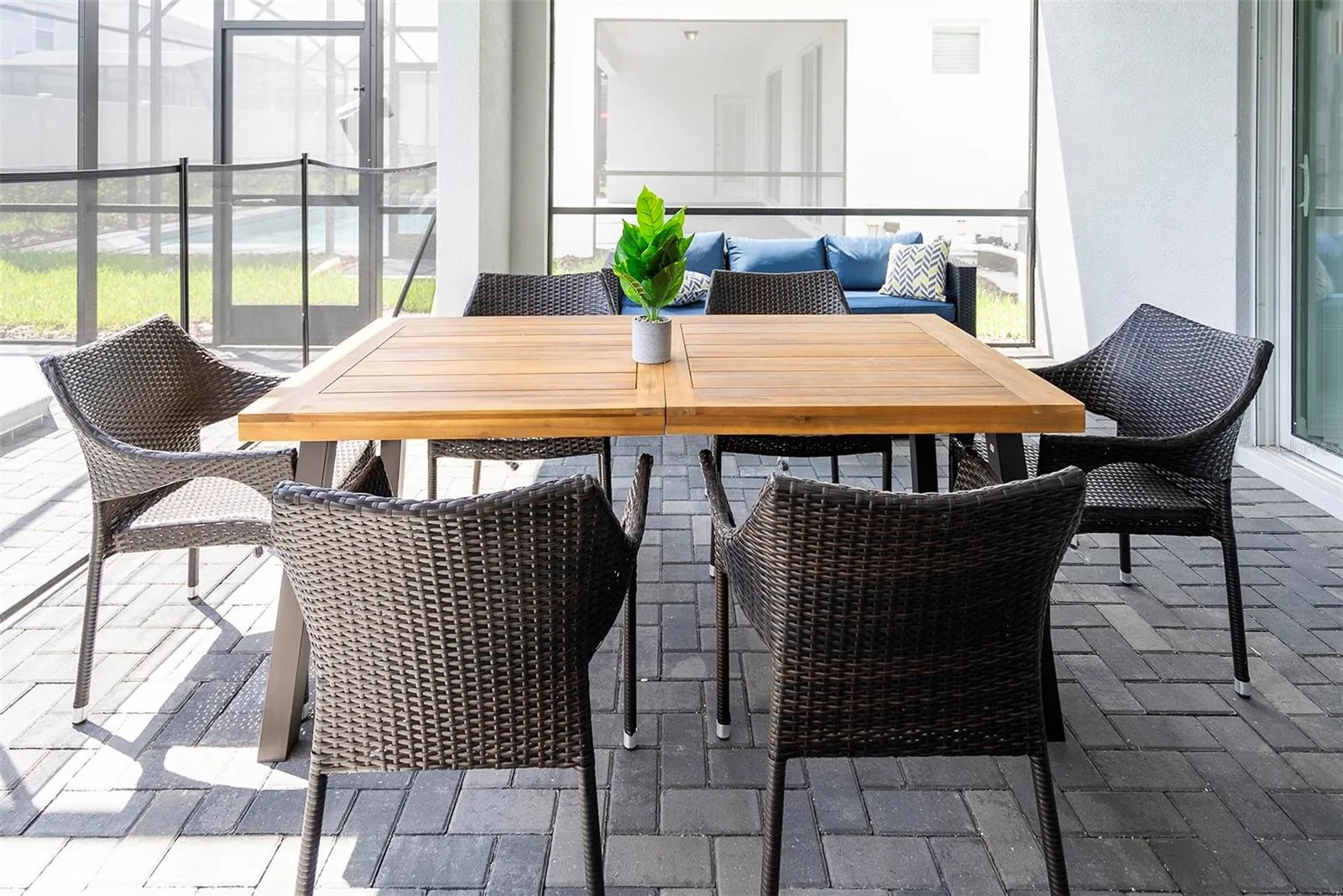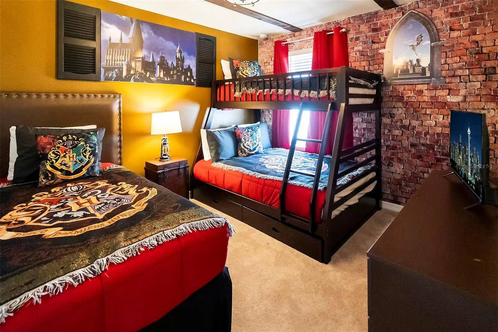Welcome to your dream vacation home, just minutes away from the magic of Disney! This stunning 7 bedroom, 5.5 bathroom pool home offers the perfect blend of luxury, comfort, and privacy, making it an ideal short-term rental or personal getaway. Fully furnished and move-in ready! Step inside and be greeted by beautiful updated flooring and natural lighting that flows throughout. The open-concept living and dining areas are spacious and inviting, perfect for gathering with loved ones or entertaining guests. The fully equipped kitchen features modern appliances, ample storage, and a large island that makes meal prep a breeze. One of the standout features of this home is its dual primary suites, one on the ground floor and one upstairs, offering flexibility and convenience for multi-generational families or groups. Both suites are complete with large en-suite bathrooms. Upstairs, you’ll find a cozy loft that serves as an additional living space, ideal for movie nights, gaming, or just relaxing with a good book. The remaining bedrooms are spacious and beautifully appointed, ensuring everyone has their own comfortable space to unwind. Step outside to your own private backyard oasis, where a sparkling pool and spa await. With no rear neighbors, you’ll enjoy some privacy while you soak up the Florida sun or relax under the covered patio. This peaceful outdoor space is perfect for lounging, entertaining, or simply taking in the beautiful surroundings. Located just a short drive from Disney, this home is not only a prime short-term rental investment but also a fantastic vacation home for personal use. With easy access to world-class attractions, dining, shopping, and entertainment, guests will love the convenience and comfort this home provides. Don’t miss the opportunity to own this incredible 7-bedroom pool home near Disney!