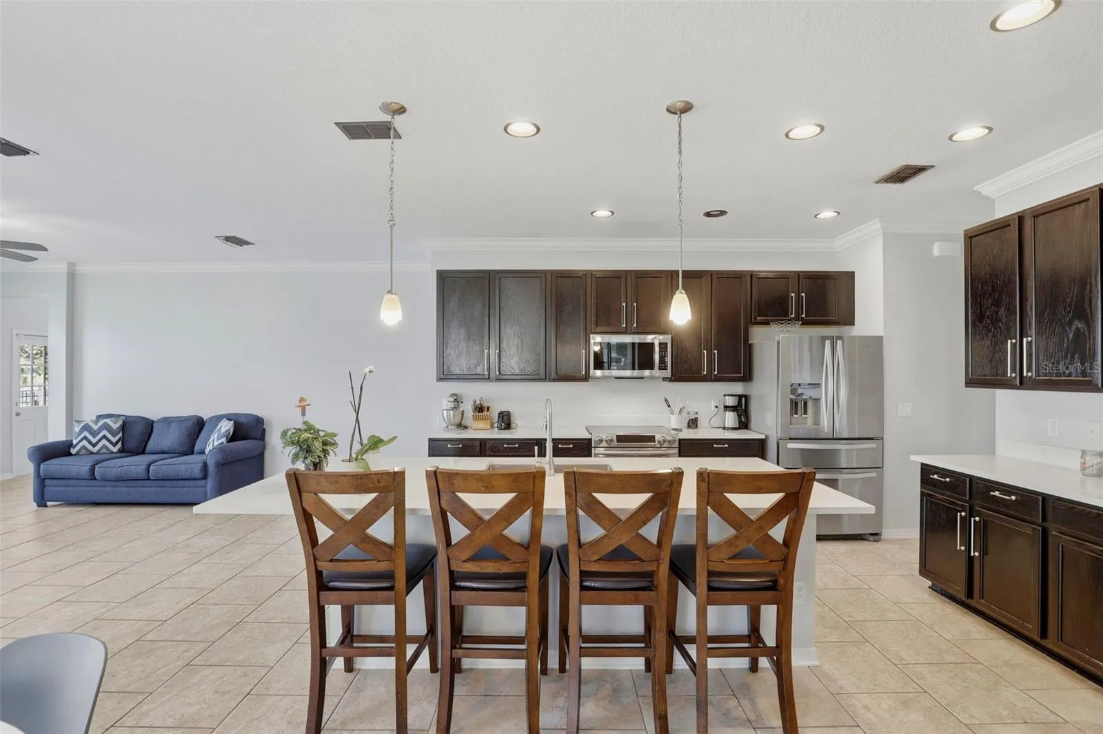 The gourmet kitchen overlooks the main living area and features stainless steel appliances, abundant cabinetry, and a center island perfect for cooking and entertaining. The spacious primary suite includes a walk-in closet and an en-suite bath with dual vanities and a walk-i shower.