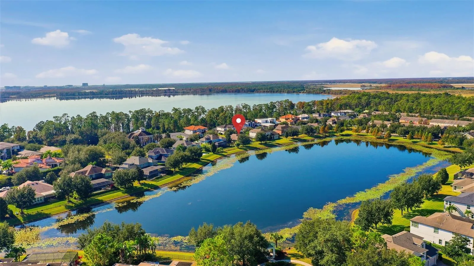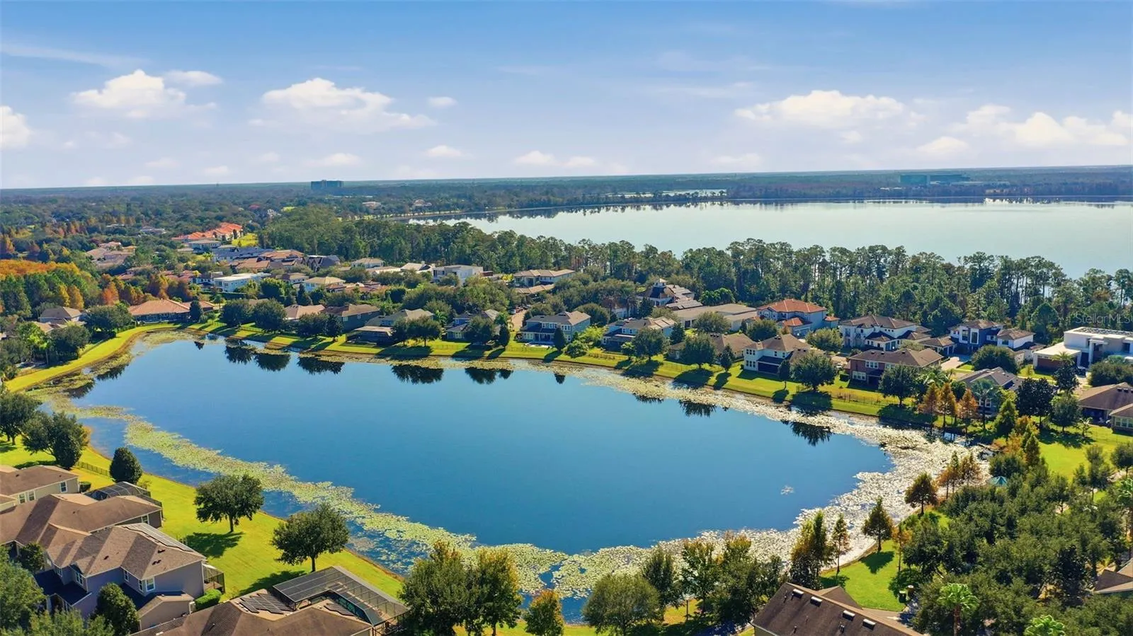 Beautifully maintained executive-style residence located in the highly sought-after Waters Edge at Lake Nona, a private gated enclave within the master-planned Lake Nona community. Situated on an oversized lot directly across from Lake Nona, this home offers deeded lake access and is just a short walk to the community’s private boat ramp, dock, recreational parking area, and included YMCA family membership provided to all Waters Edge residents.