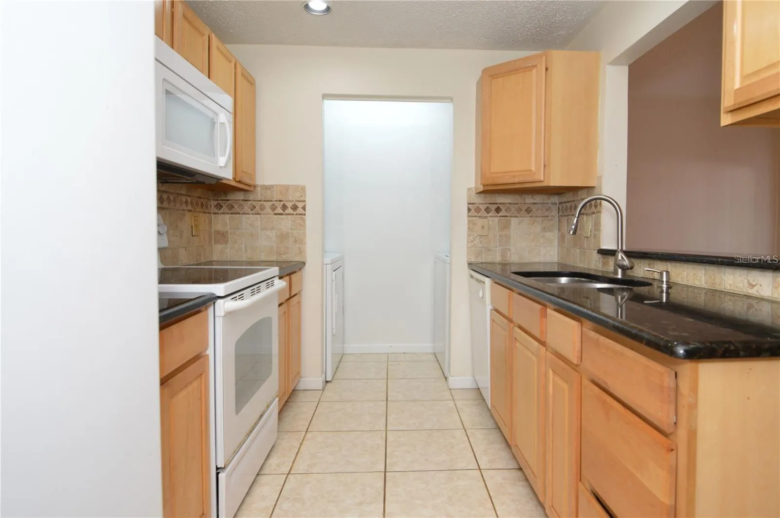 Welcome to paradise at Eastwood Shores. This condo is a Two bedroom and One bathroom with a shared garage located on 2nd floor with your own private staircase to the front door. This condo features mahogany kitchen cabinets, granite countertops, tile backsplash, white appliances, full size washer & dryer, high & vaulted ceilings, HUGE great room with accent brick wall and electric fireplace, ample closet space throughout and MASSIVE balcony that connects from great room and 1 of the bedrooms. Tile floors throughout and laminate floors in both bedrooms located on 2nd floor w/covered balcony overlooking the community. Rent Includes: Trash, Water & Sewer and 1 car garage. Eastwood Shores amenities sparkling swimming pool, tennis court, fishing pier, trails and tucked away in the back of the community is a peaceful walk to the Long Branch Creek observation deck, great for fishing! Close to both TIA & St Pete airports, easy access to 60, US19, Tampa, St Pete, award winning beaches, entertainment, shopping, Golf Courses, and a large variety of restaurants!