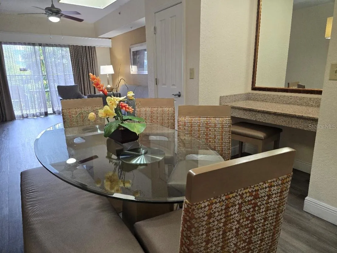 Set in Building A — the closest and most convenient building in the community, this spacious condo offers a light, open layout made for relaxation and entertaining. The living and dining areas flow seamlessly into a fully equipped kitchen featuring granite countertops, an island, and full-size appliances. The primary suite includes a luxurious en-suite bath, while two additional large bedrooms provide excellent accommodation for family or guests. Enjoy relaxing on your private balcony, the perfect place to unwind after a day at the theme parks or meetings.
