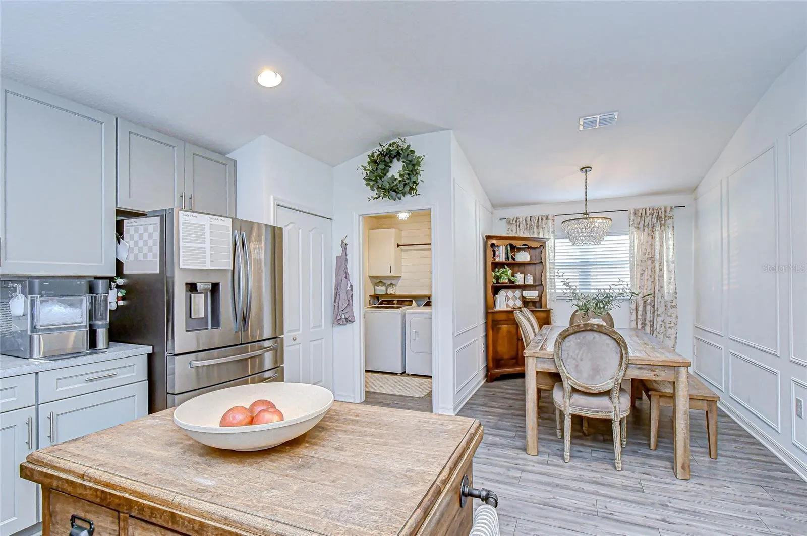 The dining room is located just off the kitchen, and there is also a separate laundry room