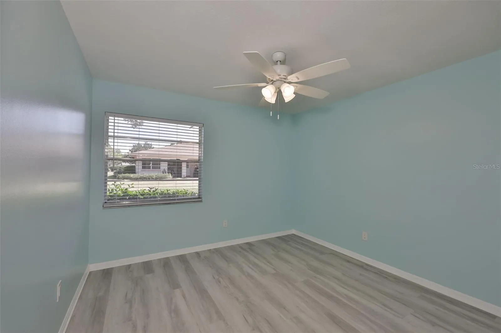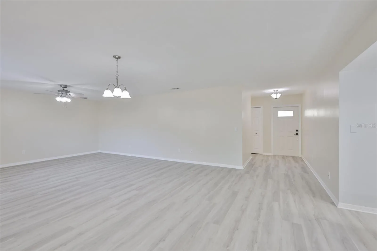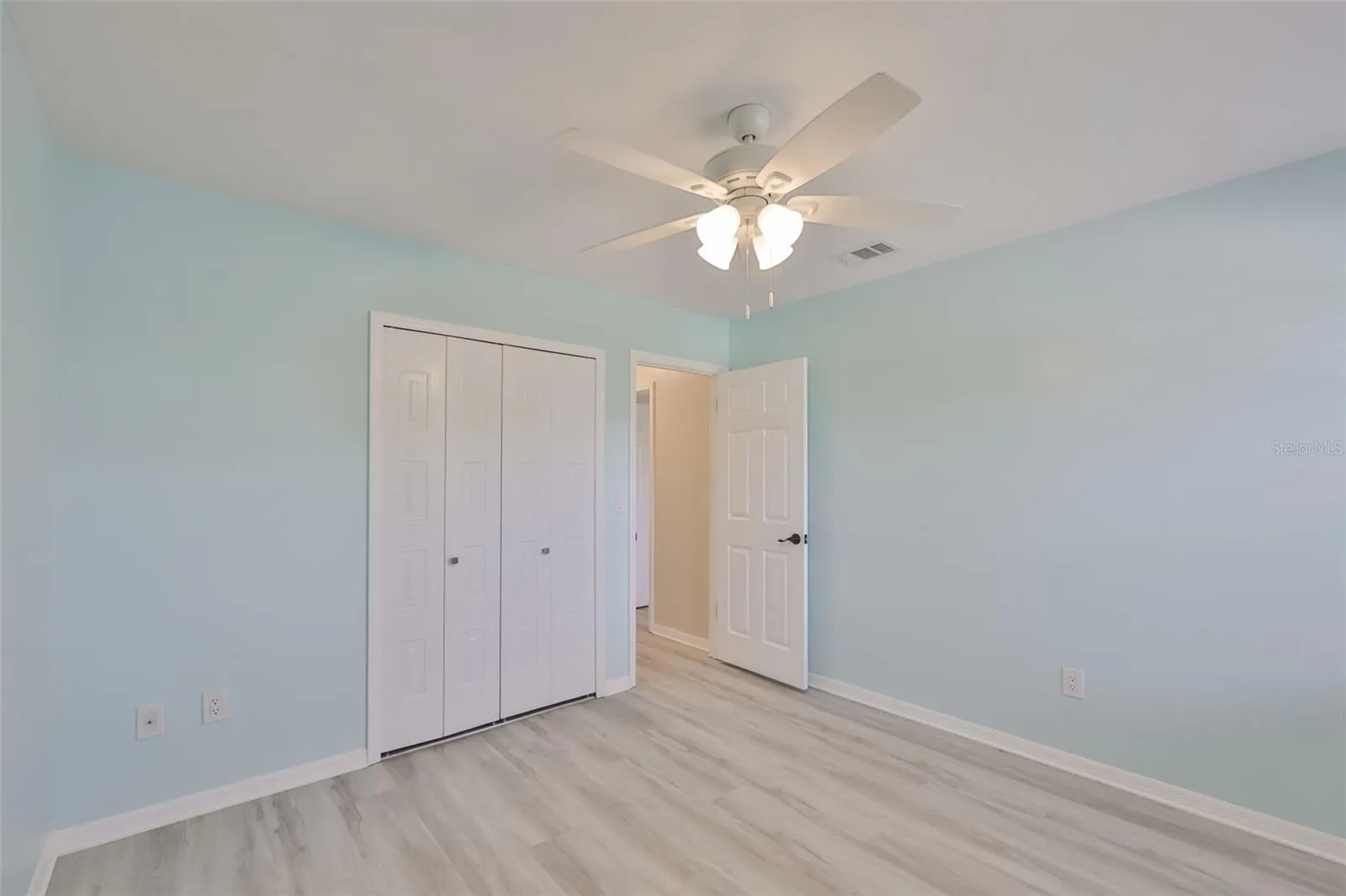 Additional interior enhancements include all-new 6-panel doors with upgraded hardware, new ceiling fans in every room, updated light fixtures in the living room, hallway, and entryway, plus 2” cordless window treatments in the living room and both bedrooms. The laundry room has been freshly painted and updated with new hardware, and it includes a newer washer and dryer.