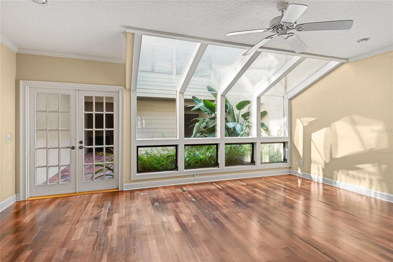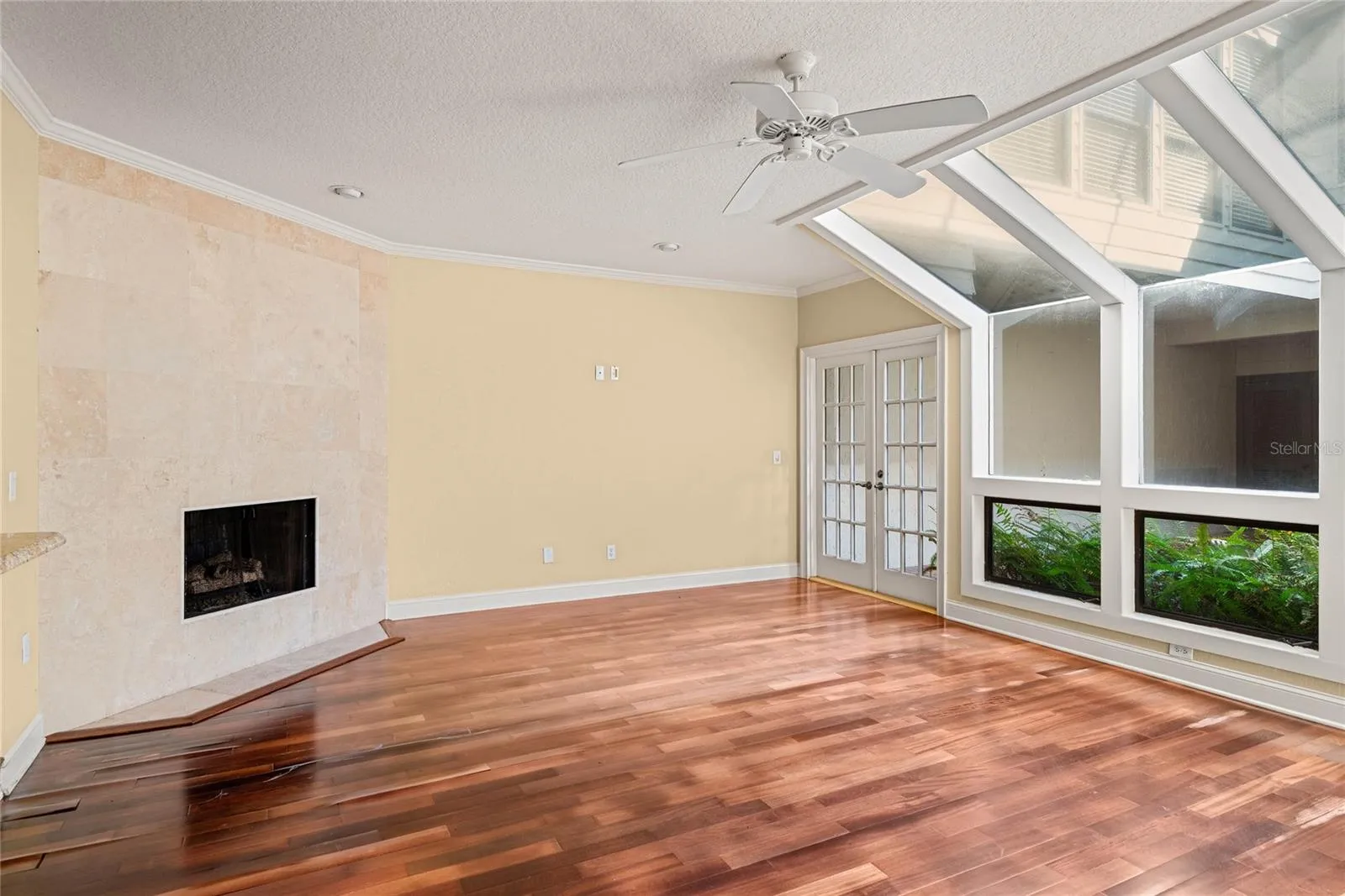 The main level welcomes you with formal living and dining rooms, ideal for entertaining. The separate family room showcases a wood-burning fireplace and flows seamlessly to the heart of the home—the kitchen. French doors open from the family room to a vaulted screened lanai, creating the perfect Florida indoor-outdoor living experience for year-round enjoyment.