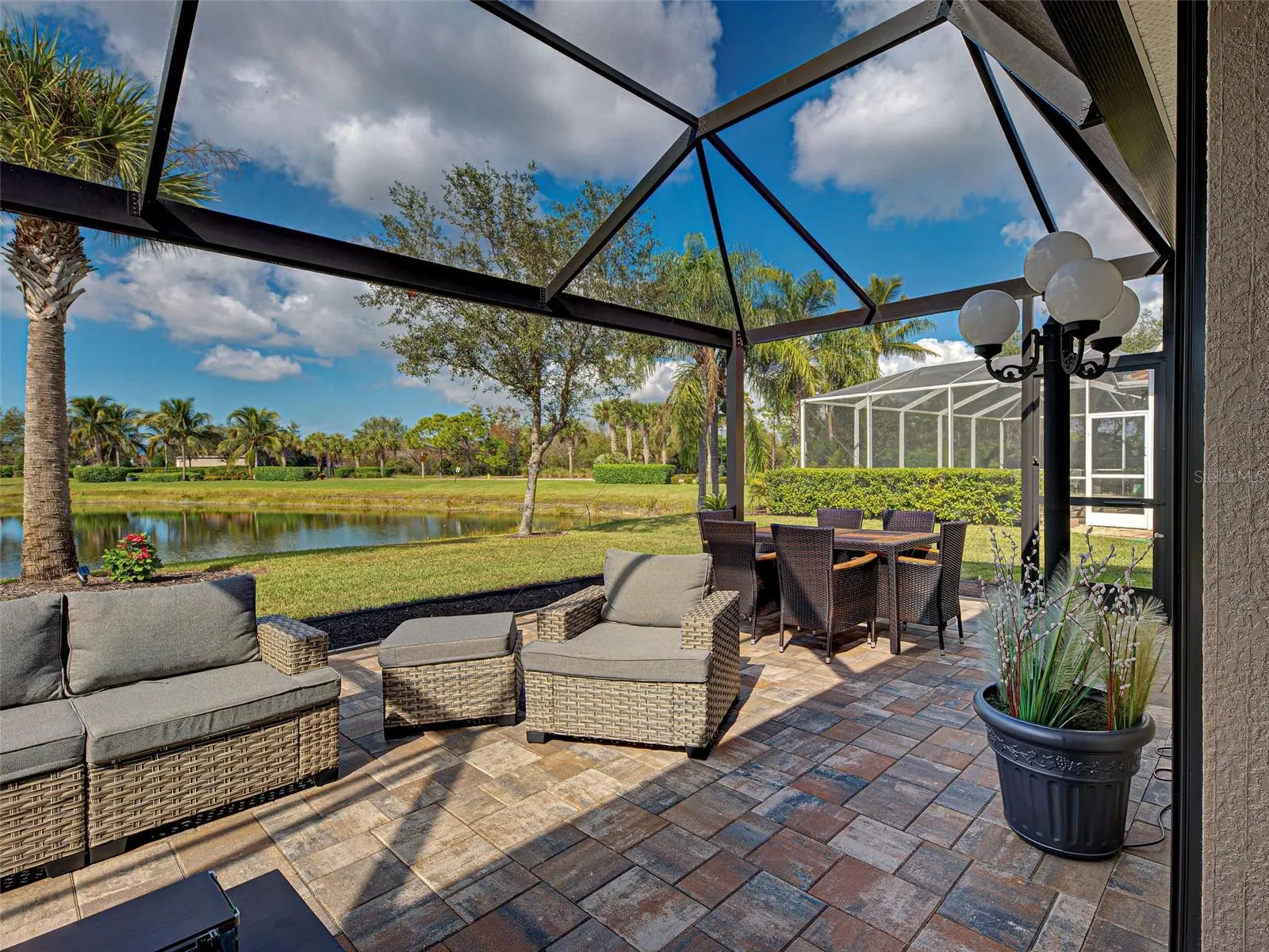 Don’t let this stunning Vernon Hill model residence in the highly desirable gated community of Islandwalk escape you. This beautifully maintained, worry-free 3-bedroom, 2-bath, plus flex home offers peaceful water views and a long list of thoughtful upgrades all completed between 2023 and 2025 that enhance comfort, convenience, safety, and style. Upon entry, you’ll notice the widened driveway, retractable front entry screen and PGT double hung impact windows throughout, along with the attached garage featuring clean epoxy coated flooring. The mechanical upgrades include a 250-gallon whole-house generator, new A/C, new water heater, water softener & whole house purification treatment system. There are remote-controlled storm smart lanai shutters for the newly built oversized, covered and screened lanai. This outdoor oasis includes a picture-frame screen for uninterrupted views, under-air space for year-round enjoyment, and most of the beautiful lanai furniture conveys with the home. Once inside this respite, you’ll enjoy tile and luxury vinyl flooring (no carpet anywhere) plus custom window treatments and recessed lighting that elevate the space. The open-concept layout features a spacious great room and breakfast nook, both with sliding glass doors that frame the tranquil water view and lead to the lanai. The kitchen is a chef’s delight with white cabinetry, a large island, new garbage disposal, newer appliances, a pantry, and enhanced lighting. The adjacent dining area flows seamlessly into the living space, making it ideal for entertainment. The primary suite offers luxury vinyl flooring, water views, a generous walk-in closet, and an en suite bath with soaking tub, walk-in shower, and grab bar for added safety. The flex room is a versatile bonus space; perfect for a home office, media room, or an optional 4th bedroom. It features a high-quality murphy bed, ceiling fan, and custom shades. Two additional guest bedrooms are located on the opposite side of the home for privacy, each with luxury vinyl flooring, built-in closets, ceiling fans, and easy access to a full guest bath with tile flooring, tub, and grab bar. Additional highlights include a laundry room with lg washer/dryer, newer upper and lower cabinetry, countertop, and utility sink. This home blends elegance, functionality, and peace of mind—all in one of the area’s most vibrant and amenity-rich communities. Residing at Islandwalk offers a sense of resort-style living year-round. It’s a very active community with rich amenities including geothermal pools, har-tru tennis courts, pickleball and bocce ball courts, lap pools, spa, playground, basketball court, dog park, two state-of-the-art fitness centers, 24-hr staffed front gate, on-site 7-day/weekHOA staff, outdoor pavilions with BBQ grill, library and much more to keep you and your guests engaged. Golf carts are permitted throughout the community and can be taken out if registered. Enjoy exclusive access via a resident-only back gate to the exciting downtown Wellen Park where you can enjoy various restaurants and eateries, a marketplace, entertainment, cultural events, and the Atlanta Braves ballpark. Conveniently located just 4 miles from I-75. Centrally located with easy access to multiple pristine Gulf beaches, airports and historic Venice Island.