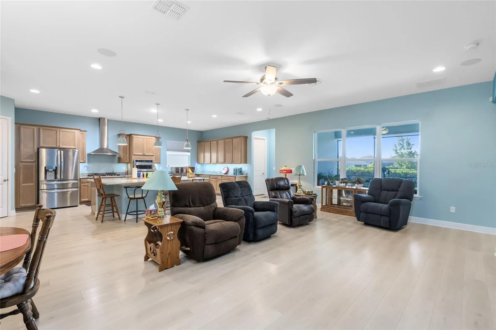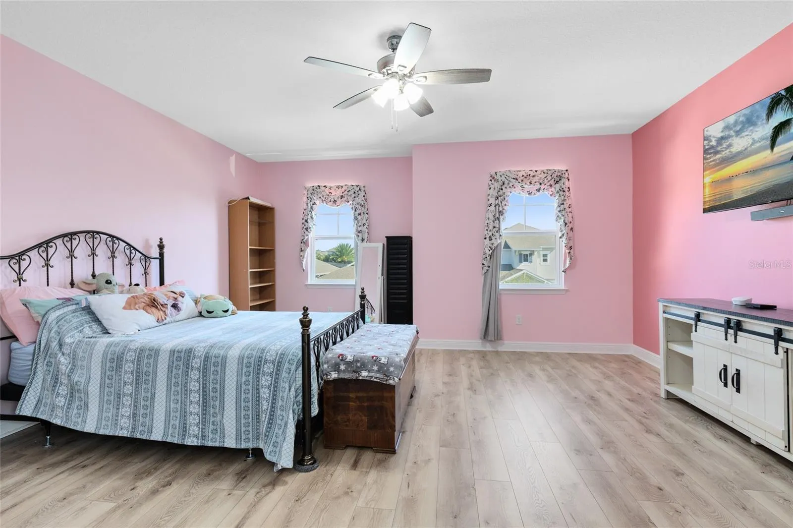 Enjoy Florida living on the screened lanai with epoxy flooring, a ceiling fan, and a chlorine hot tub included. The fenced backyard offers plenty of room to unwind — and you can even catch Disney’s nightly fireworks from the lanai. The garage also features epoxy flooring, and the extended driveway provides a third parking space.