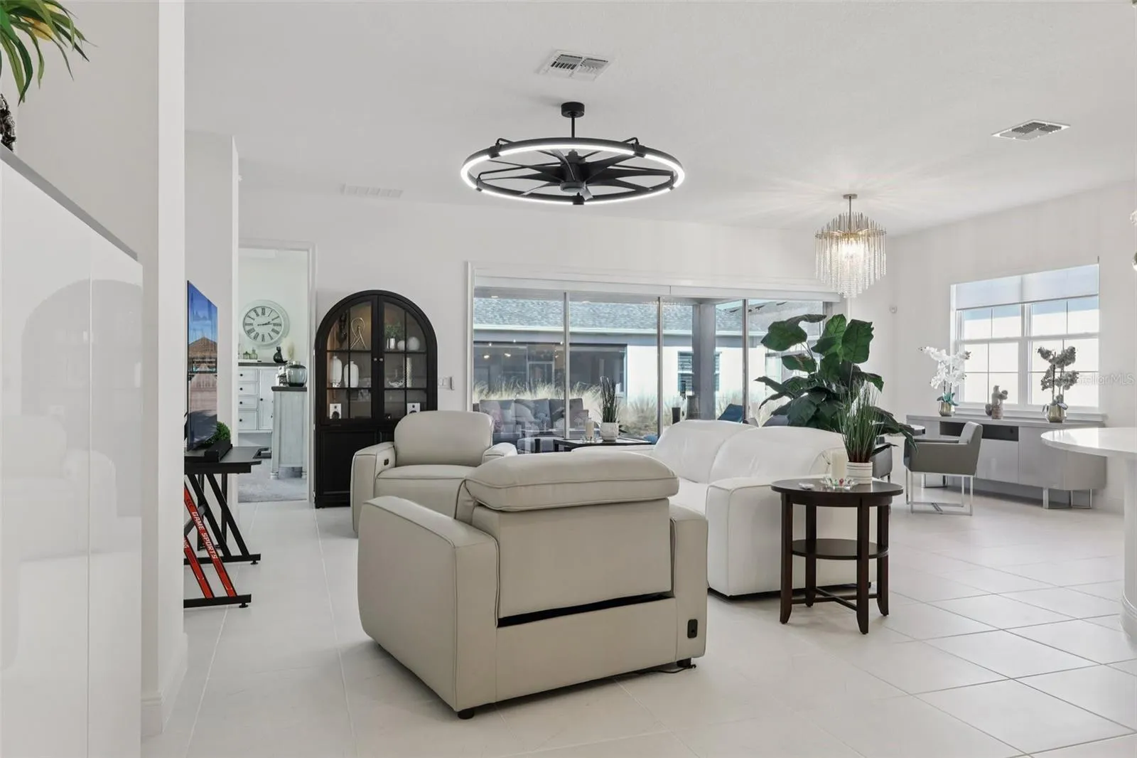 IMPECCABLE is just one way to describe this NEARLY NEW home. Located in the ACTIVE LIFESTYLE Twin Lakes GATED community, the benefits of living here goes beyond the 3 BED, 2.5 BATH floorplan with 3213 total sqft. Take your GOLF CART approved streets to the PUTTING GREEN, TENNIS COURT, BASKETBALL, BOCCE BALL, PICKLEBALL COURTS. Or take community rental BOATS OF ALL KIND out on LIVE OAK LAKE for some water based fun. Prefer to be in the water? Try the RESORT POOL. Like to sweat out water? Head to the FITNESS CENTER for a class. OR just enjoy your private home amenities, such as the Chef’s kitchen with 5 burner GAS COOKTOP w/stainless vent hood, Convection WALL OVEN and MICROWAVE combo, Side-by-Side STAINLESS FRIDGE, DISHWASHER, ample amount of SLEEK CABINETS w/QUARTZ COUNTERS, and XL ISLAND/eating space w/stylish UPGRADED pendant lights. Conveniently off the kitchen is the WALK-IN PANTRY and LAUNDRY room w/ UTILITY SINK, FOLDING CENTER/DESK SPACE, and storage GALORE! Would make an excellent craft space too. There is an opulent chandelier hanging over the additional DINING ROOM that is open to the LIVING ROOM with modern fan & collapsible slider w/ REMOTE OPERATED SUNSHADES. The owner has decorated so nicely that we know you will ask if the FURNITURE IS OPTIONAL TO CONVEY, yes it is. Beyond the Living Room is the COVERED LANAI w/ sealed pavers, lighting, and PREPLUMBED for GAS GRILL/OUTDOOR KITCHEN. Back inside is the PRIMARY RETREAT w/ TRAY CEILINGS, WINDOW TREATMENTS, and ENSUITE BATH w/WALK-IN CLOSET. The XL LUXURY TILED SHOWER features TWO SHOWER HEADS, BUILT IN BENCH, & NICHES. A must see! I could go on and on, but you need to come see for yourself. It really stands out among the rest of the comparable homes! SELLER WILL CONTRIBUTE TO CLOSING COSTS & will welcome ALL OFFERS!