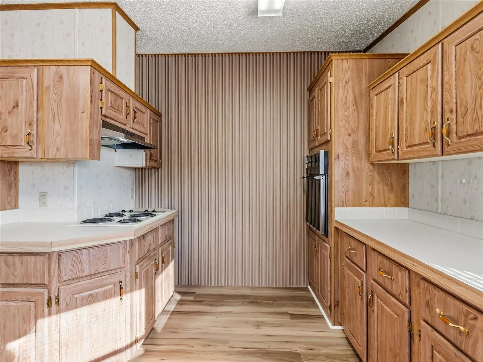 Enjoy affordable Central Florida living in this bright, spacious, and newly remodeled 3 Bedroom 2 Bathroom Orlando mobile home! The expansive kitchen is a true highlight, featuring wraparound countertops, incredible cabinet storage, a wall oven, electric cooktop, refrigerator, and built-in microwave—perfect for everyday meals or hosting friends. New roof & luxury vinyl plank flooring installed 11/2025. The airy open layout make the living spaces feel warm and inviting.