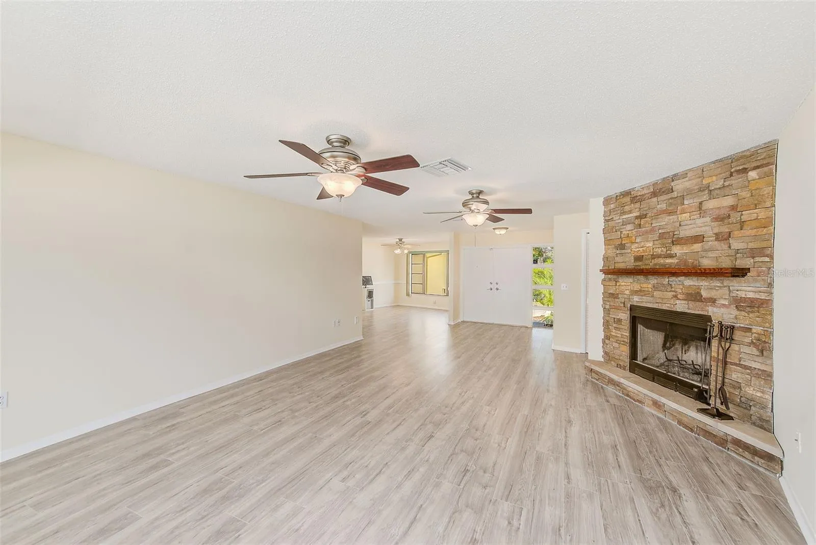 Upon entering, you’ll immediately notice the fresh, contemporary vibe with newly installed flooring throughout, fresh paint inside and out, and an open-concept design that makes the living space feel bright and welcoming. The spacious living area flows seamlessly into the kitchen, which features brand new stainless steel appliances, and plenty of storage.